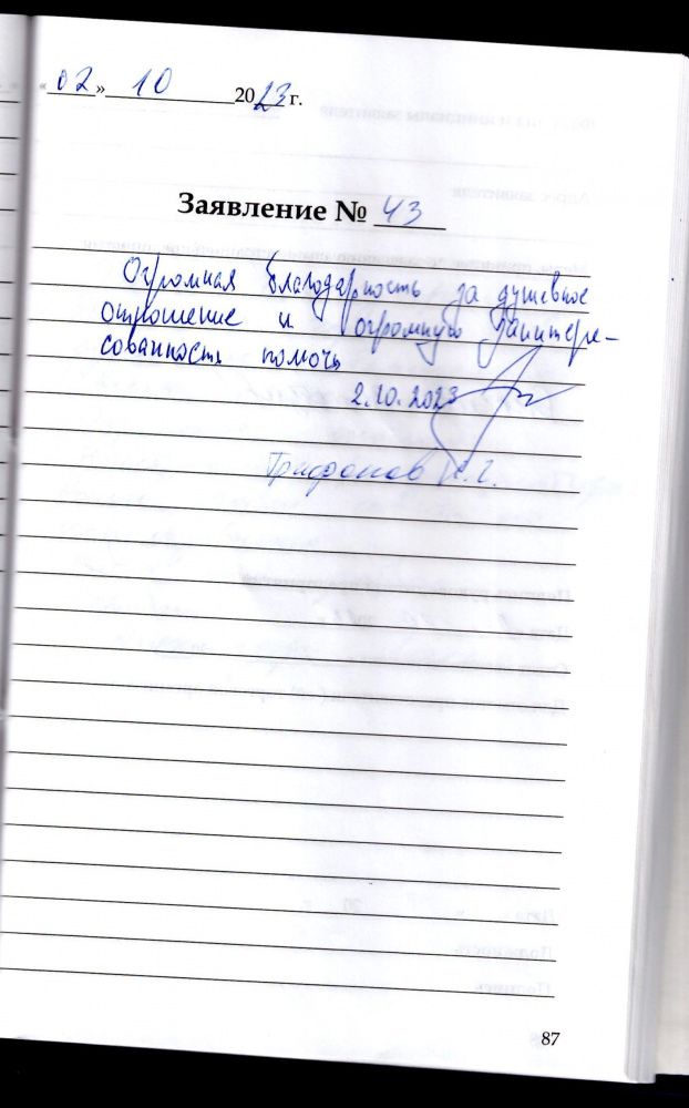 Огромная благодарность за душевное отношение и огромную заинтересованность помочь.