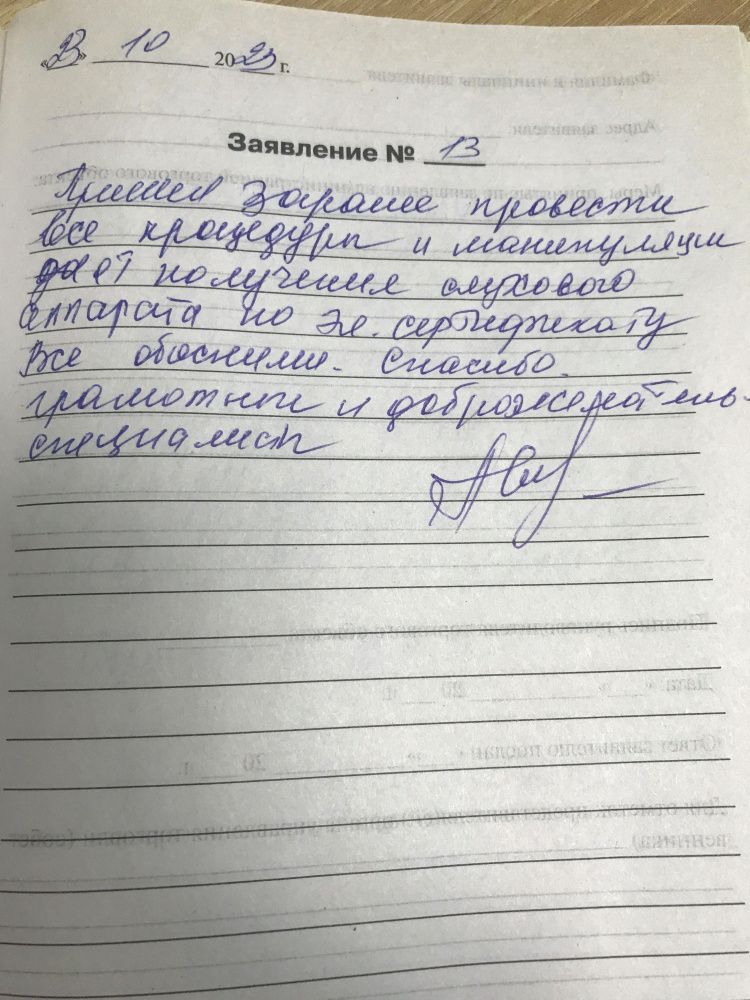 Пришел заранее провести процедуры и манипуляции для получения слухового аппарата по эл.сертификату.