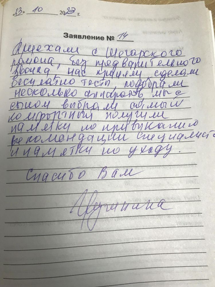 Приехали с Шегарского района, без предварительного звонка, нас приняли, бесплатно сделали тесты, подобрали несколько аппаратов, мы с сыном выбрали самый комфортный, получили памятки по привыканию, рекомендации специалистов и памятки по уходу.