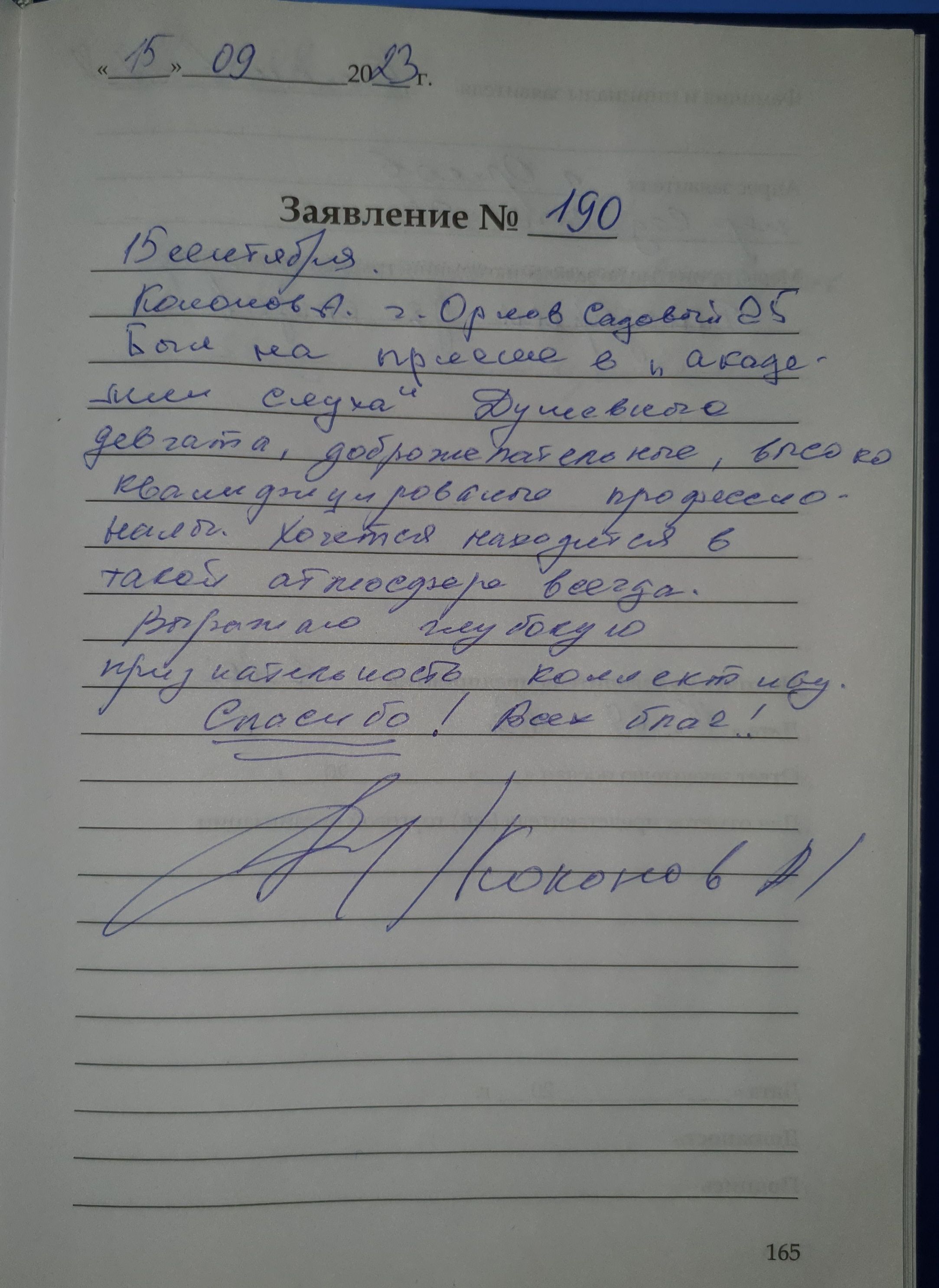 15 сентября. Кононов А. г. Орлов Садовый 25. Был на приеме в «академии слуха» Душевные девчата, доброжелательные, высоко квалифицированые профессионалы. Хочется находится в такой атмосфере всегда. Выражаю глубокую признательность коллективу. Спасибо! Всех благ! Кононов А.А. г. Орлов