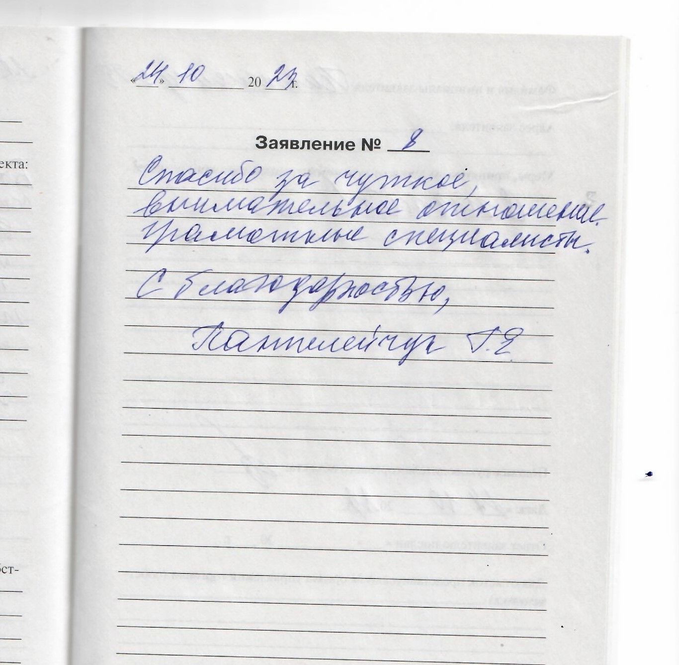 Спасибо за чуткое, внимательное отношение, грамотные специалисты. С благодарностью, Пантелейчук Г.Е.