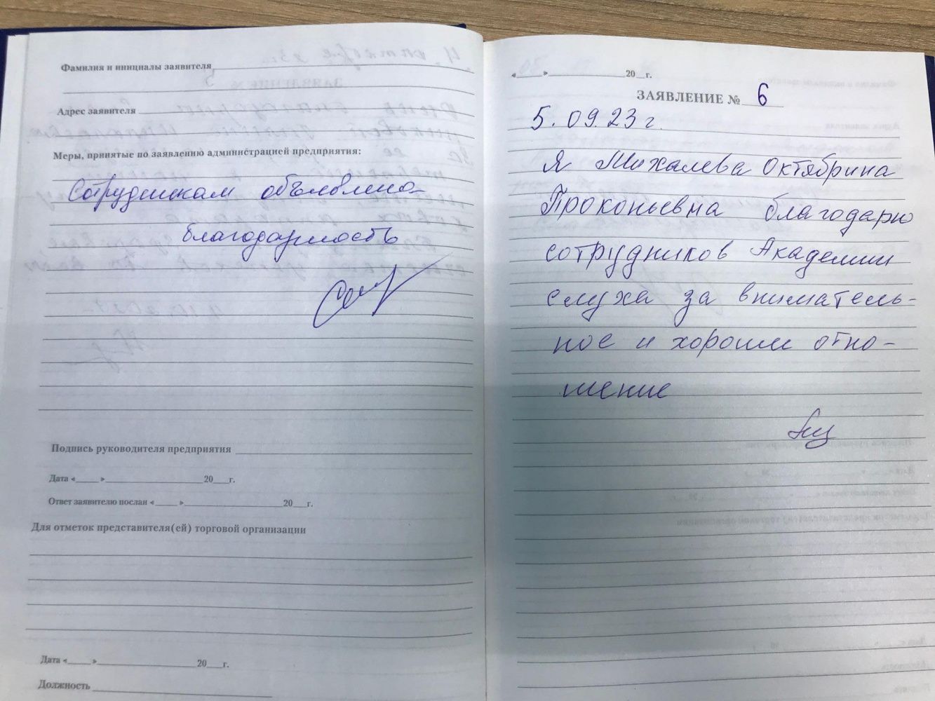 Я,Михалева Октябрина Прокопьевна,благодарю сотрудников Академии слуха за внимательное и хорошее отношение.