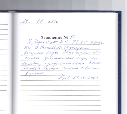 Я, Кутейников А.Н. 87 лет отроду, был и воспользовался услугами " Академии Слуха". Очень хорошая обстановка, доброжелательные люди, приветливые, профессиональные. Хочется выразить большое спасибо и благодарность.
