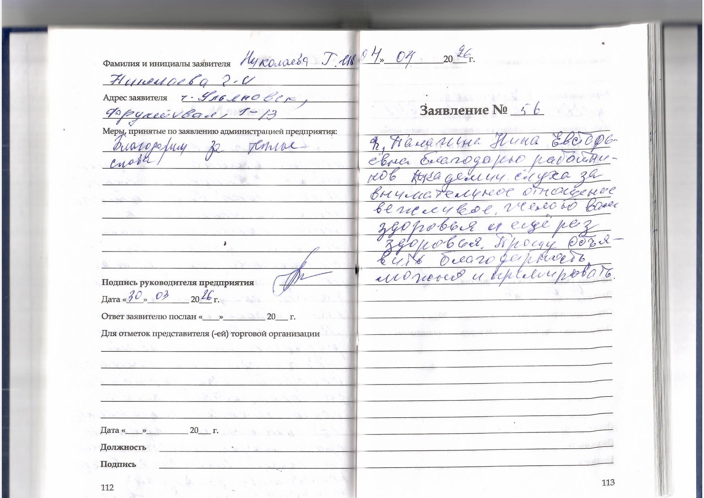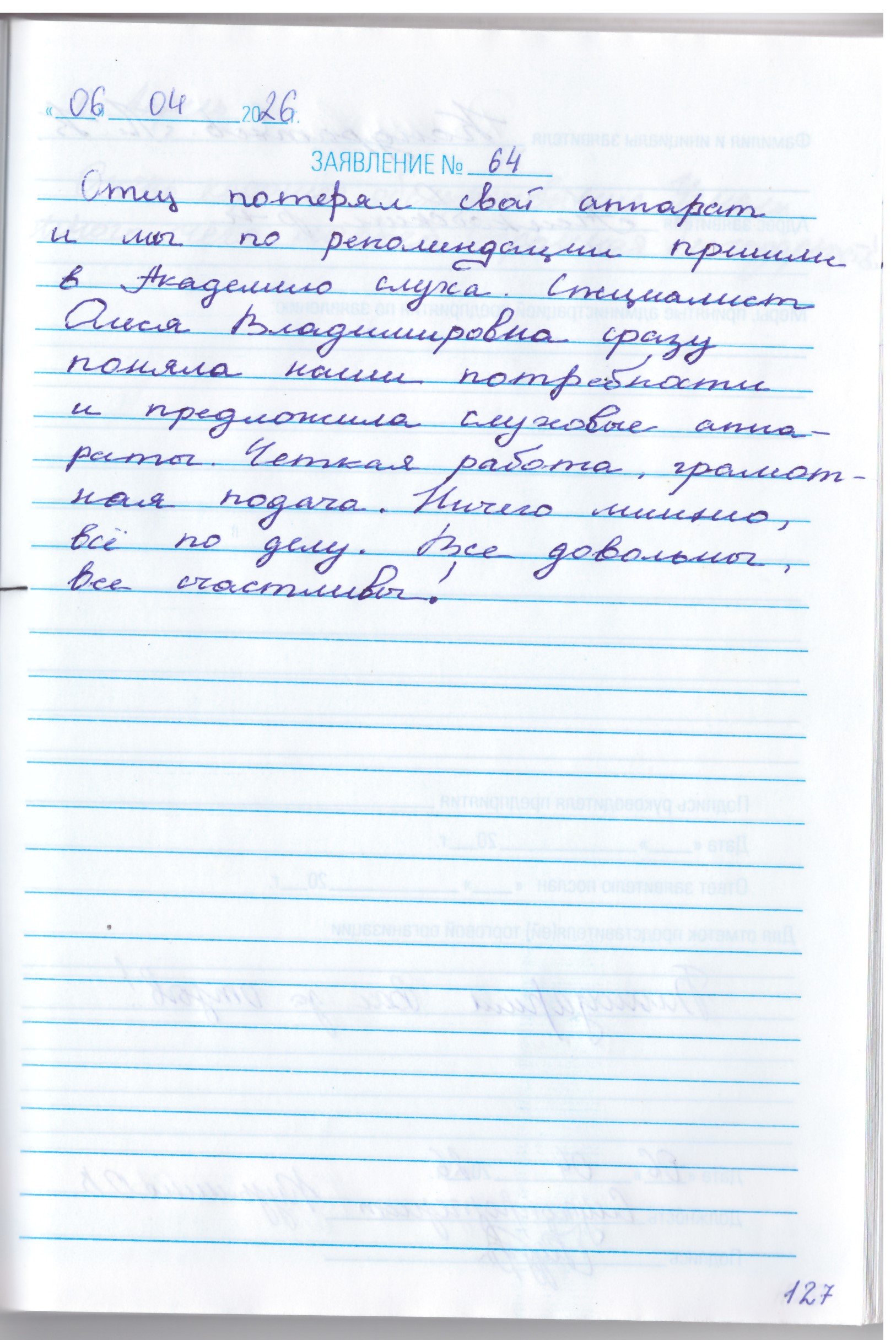 Я, Палагина Нина Евстафьевна, благодарю работников Академии Слуха за внимательное отношение , вежливое. Желаю Вам здоровья и еще раз здоровья. Прошу объявит благодарность , можно и премировать.