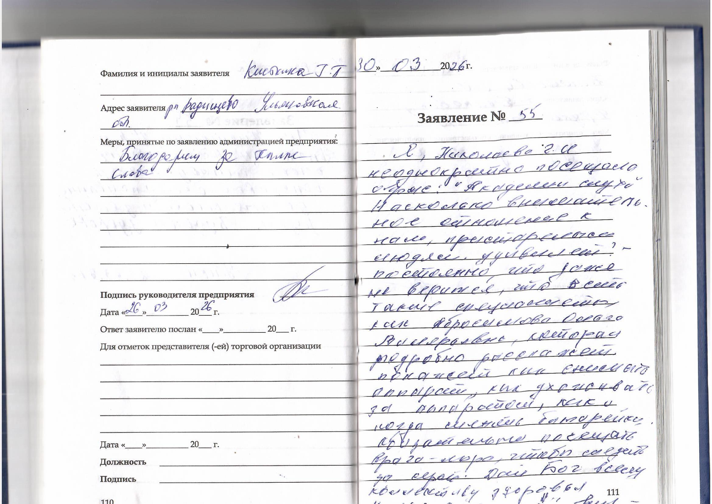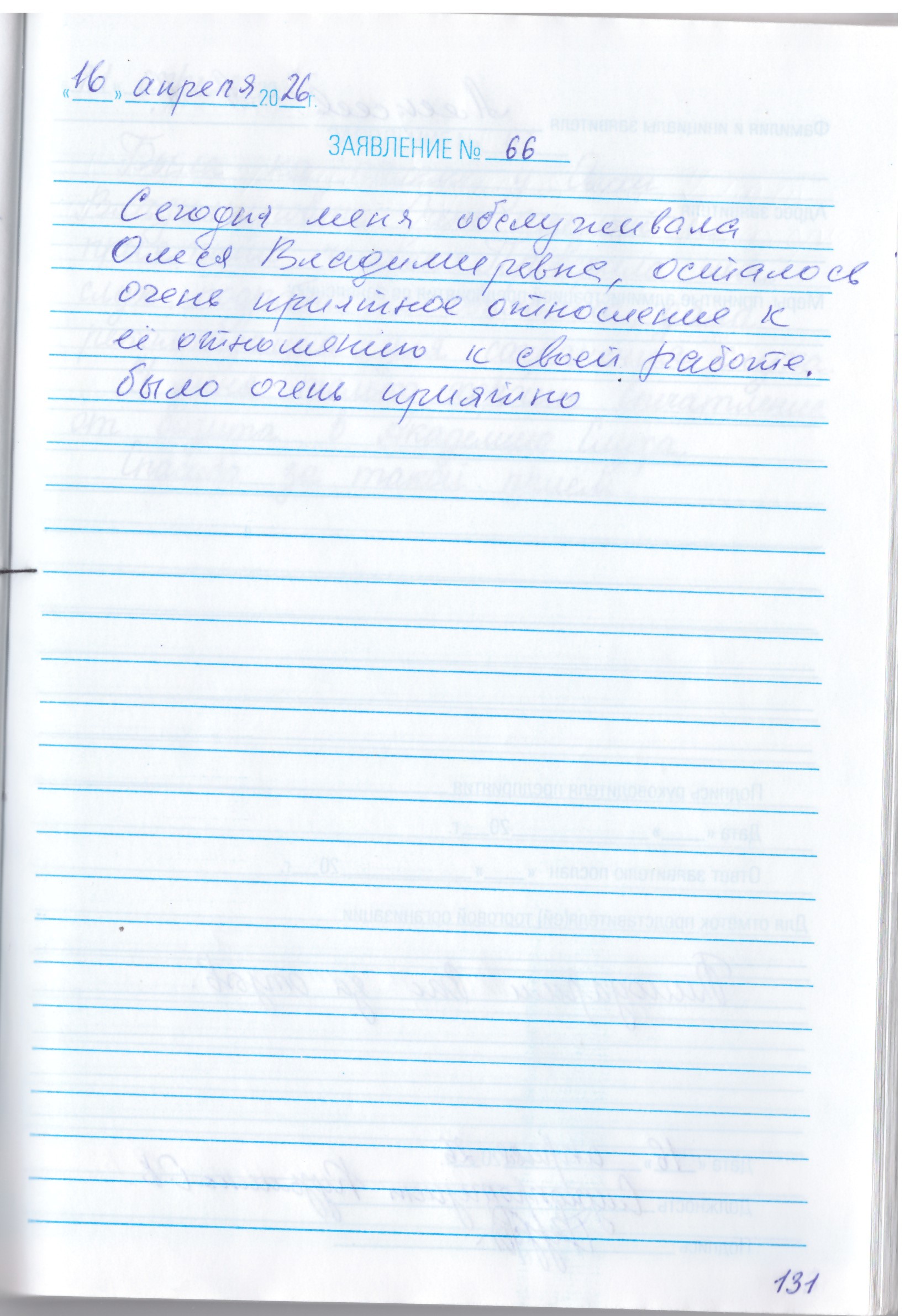 Сегодня меня обслуживала Олеся Владимировна. Осталось очень приятное отношение к её отношению к своей работе. Было очень приятно.