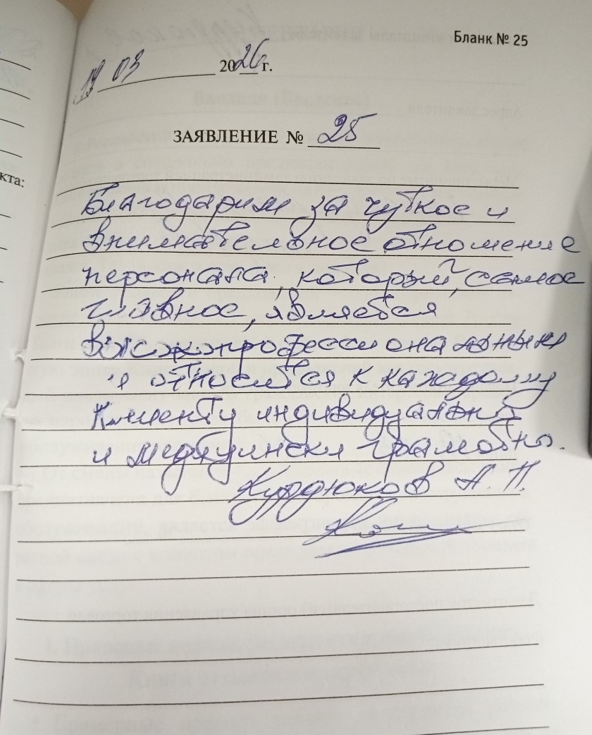 Благодарим за чуткое и внимательное отношение персонала, который, самое главное ,является высокопрофессиональным и относится к каждому клиенту индивидуально и медицински правильно.