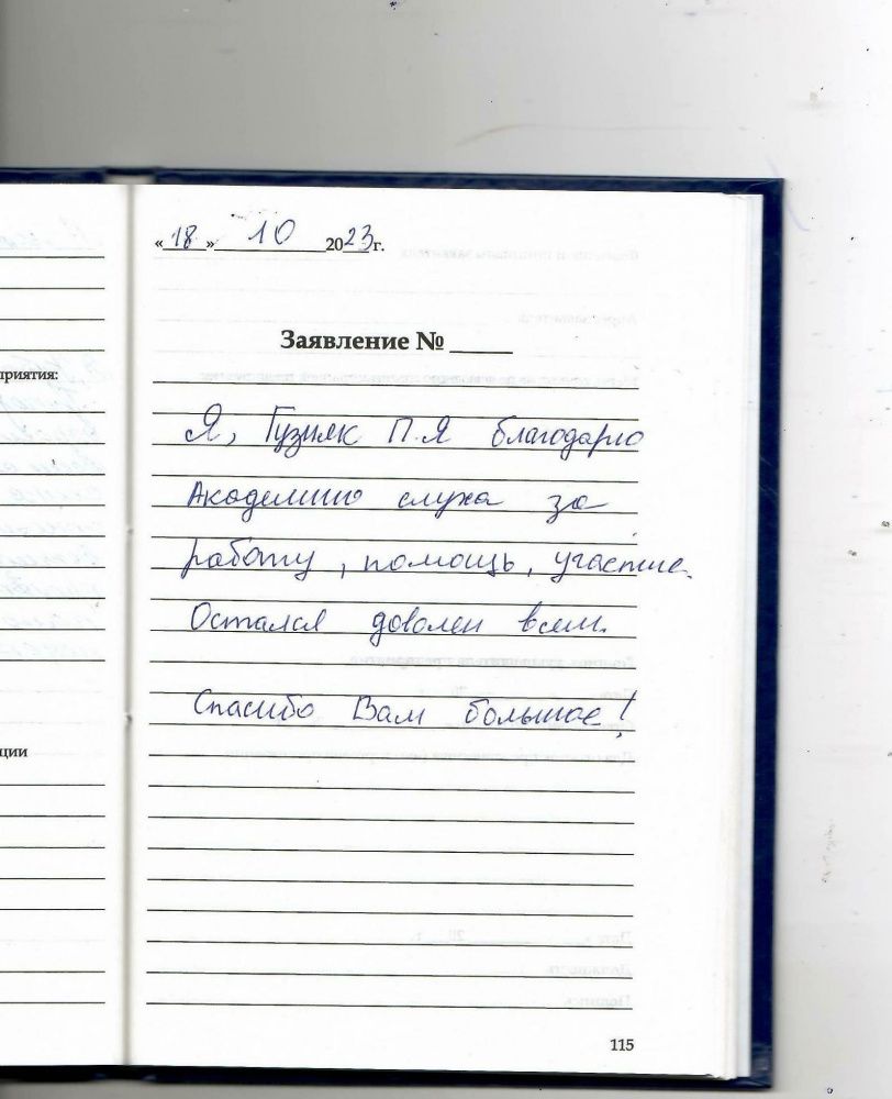 Я, Гузняк П.Я, благодарю Академию слуха за работу, помощь, участие. Остался доволен всем. Спасибо Вам большое!