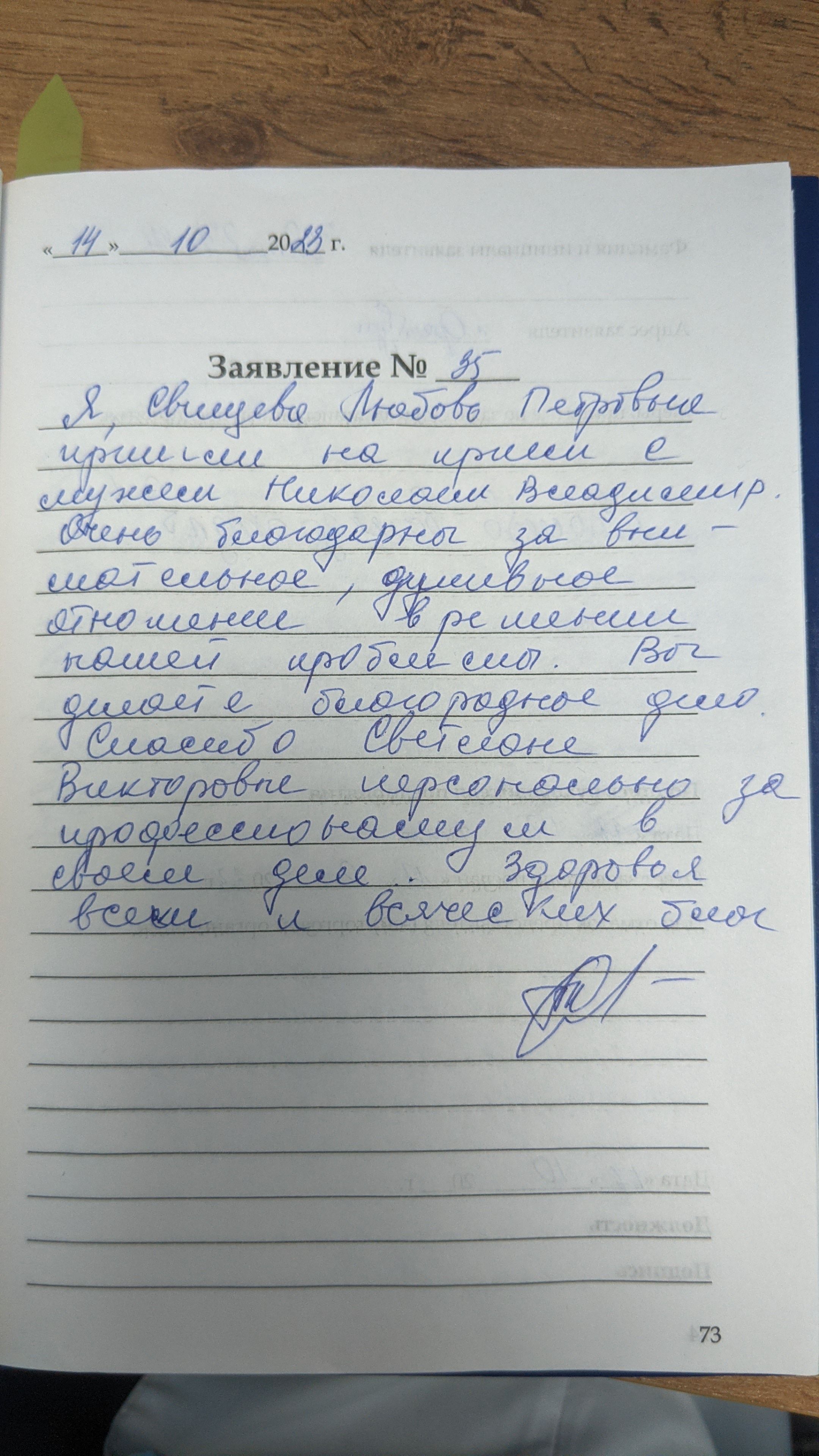 Я, Свищева Любовь Петровна , пришла на прием с мужем Николаем Владимировичем. Очень благодарны за внимательное , душевное отношение в решении нашей проблемы. Вы делаете благородное дело. Спасибо Светлане Викторовной персонально за профессионализм в своем деле. здоровья всем и всяческих благ!