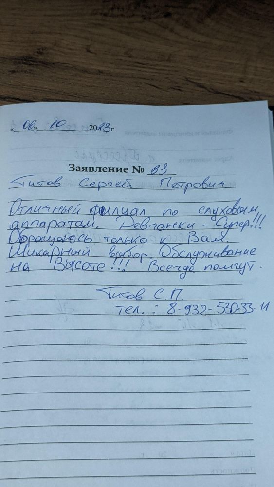 Спасибо большое внимательному персоналу . Помогли подобрать слуховой аппарат. Хорошая энергетика в клинике.