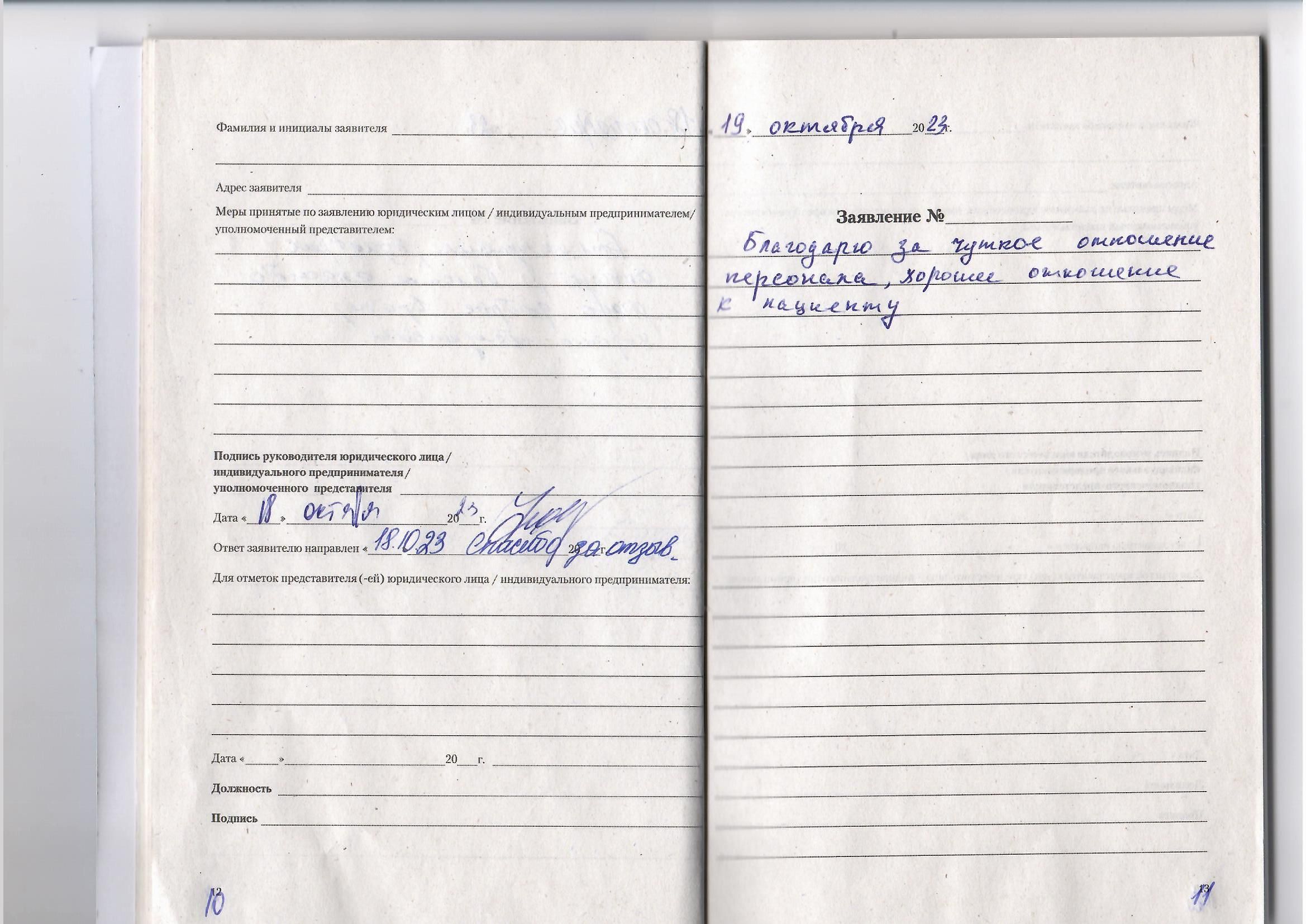 Благодарю за чуткое отношение персонала, хорошее отношение к пациенту.