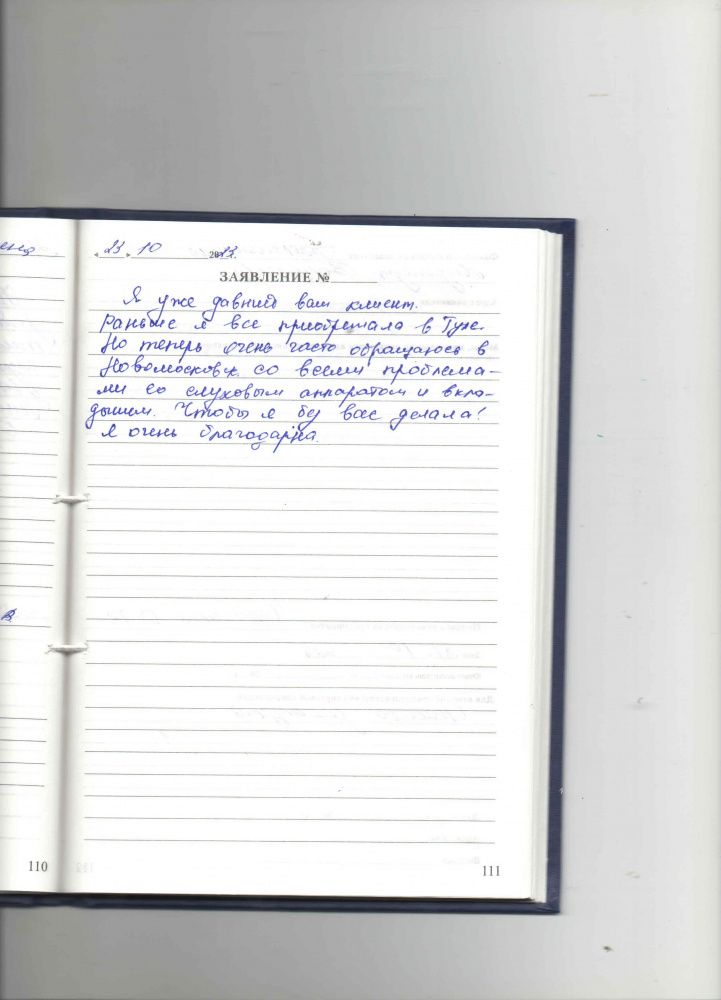 Наша семья благодарит сотрудников вашего центра за подбор аппарата нашему дедушке. Благодаря он может с нами общаться.