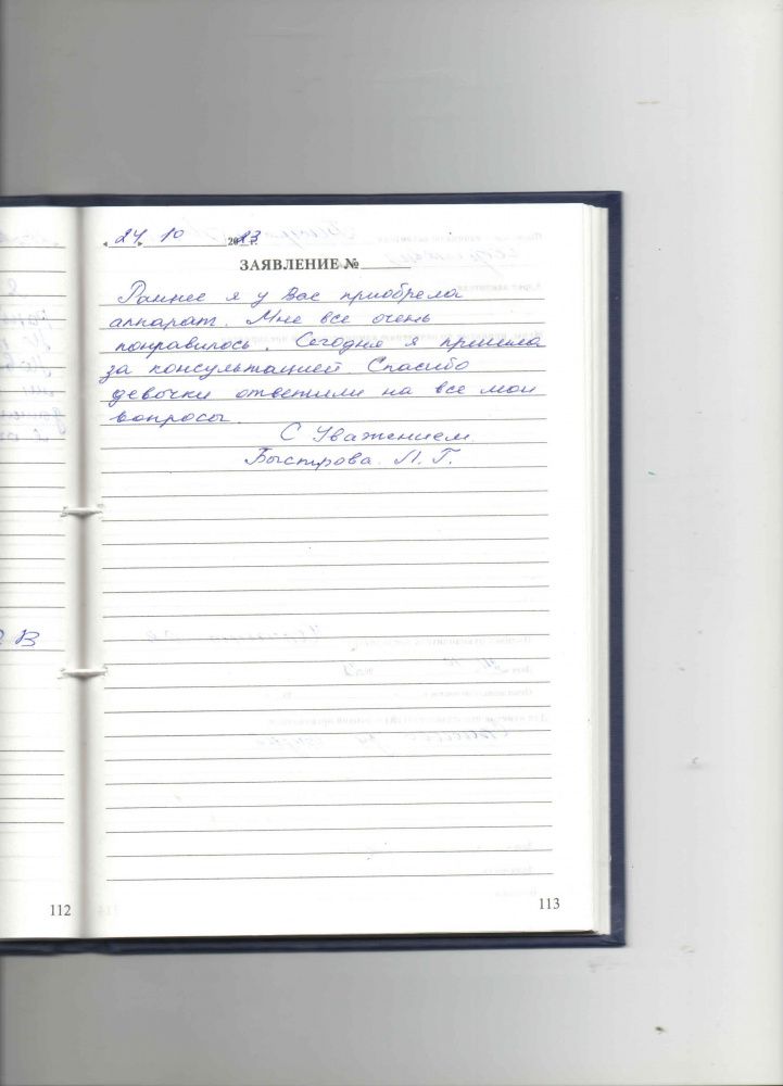 Ранее я у Вас приобрела аппарат. Мне все очень понравилось. Сегодня я пришла за консультацией. Спасибо, что девочки ответили на все мои вопросы.