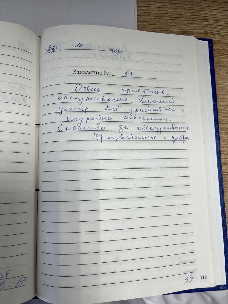 Очень приятное обслуживание. Хороший центр. Всё грамотно и подробно объяснили. Спасибо за обслуживание. Процветания и добра.