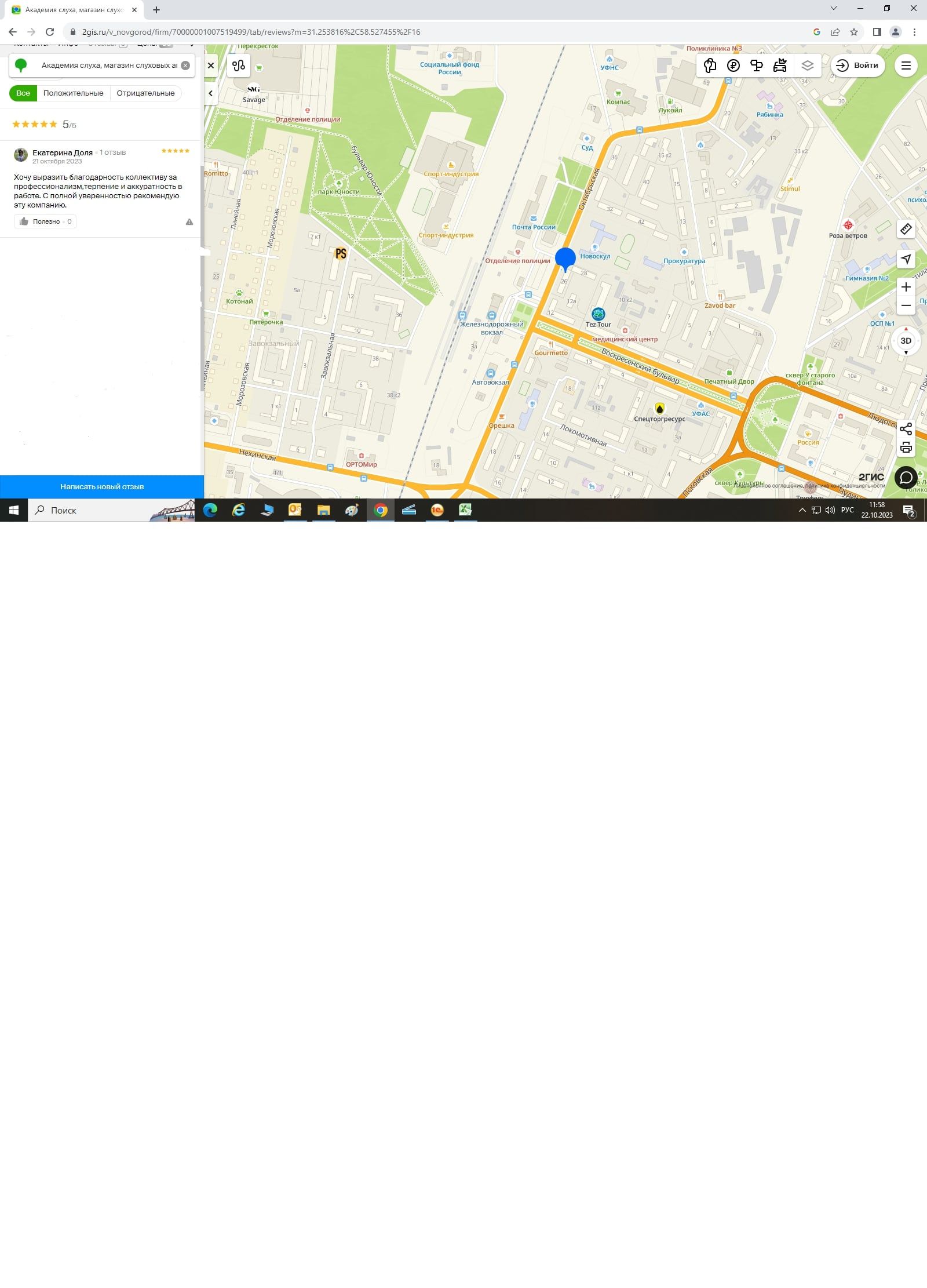 Что бы хотелось сказать, в данном заведении моей бабушке подобрали и установили очень хороший слуховой аппарат, меня очень сильно удивило гостеприимство к клиентам, персонал девушки вежливые, такие добрые все! Напоили чаем, угостили фруктами. Я очень сильно советую нуждающимся этот центр!