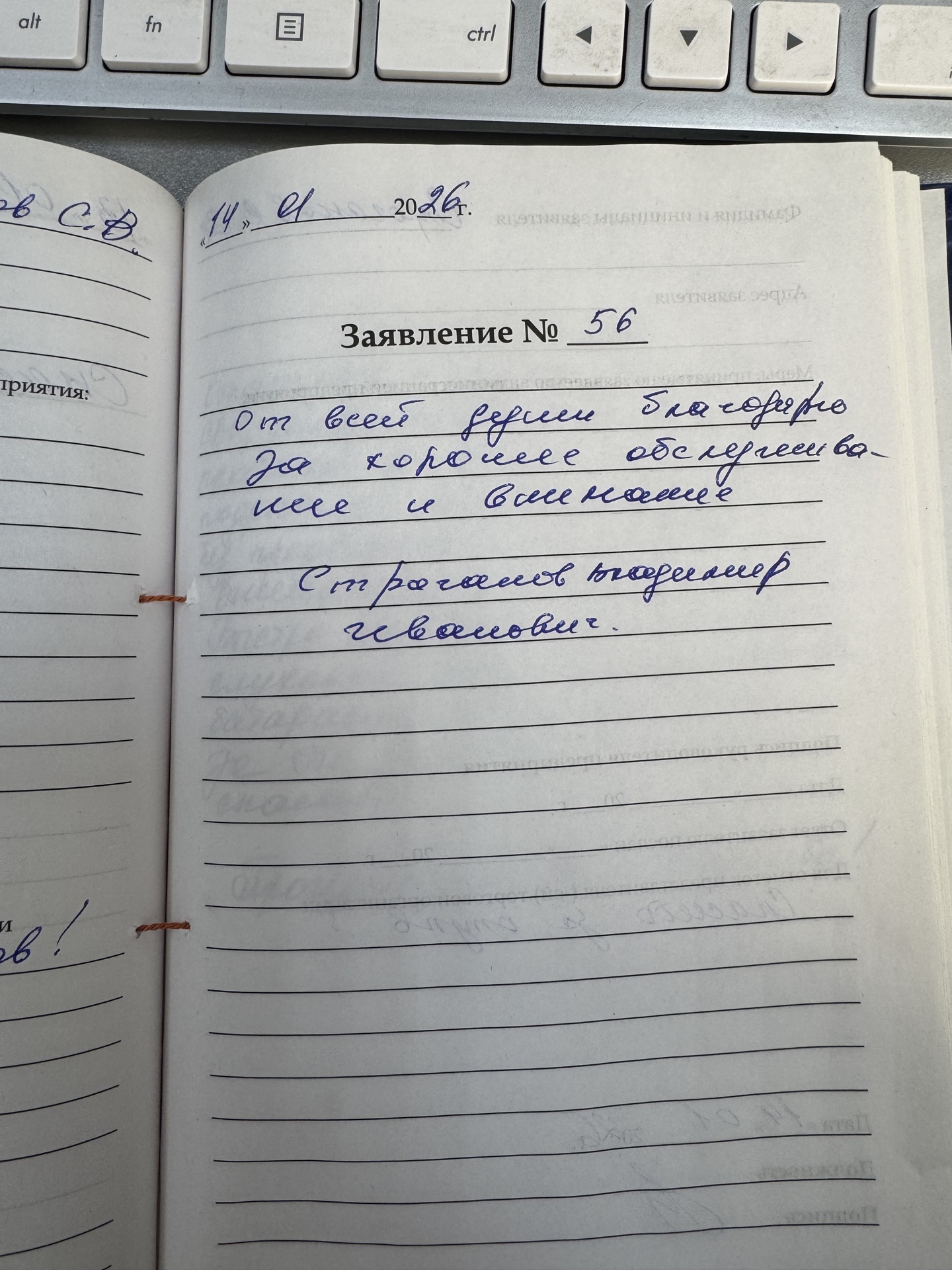 от всей души благодарю за хорошее обслуживание и внимание. Строганов Владимир Иванович