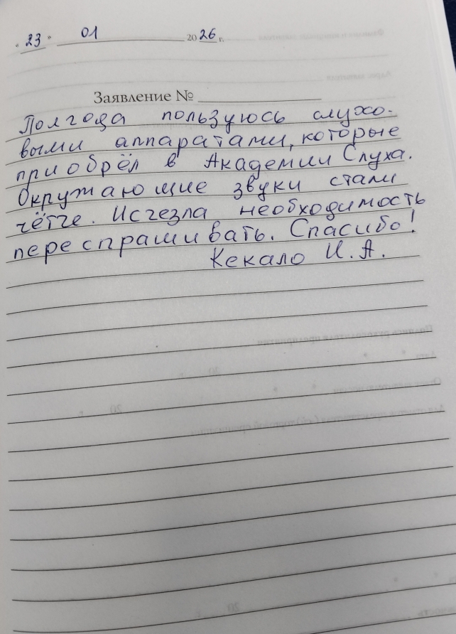 Полгода пользуюсь слуховыми аппаратами, которые приобрел в Академии Слуха. Окружающие звуки стали чётче. Исчезла необходимость переспрашивать. Спасибо!