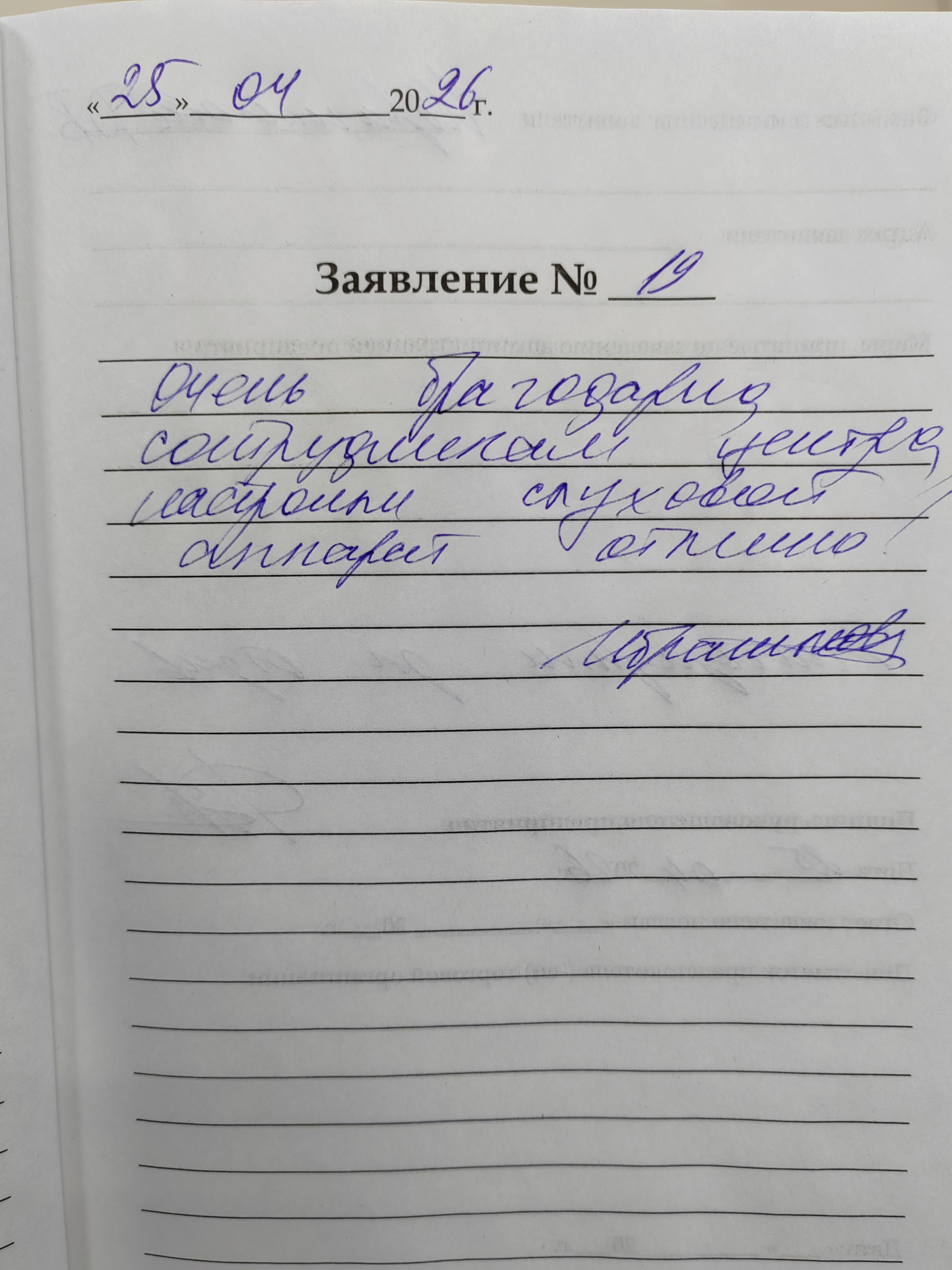 Купил слуховой аппарат,всё понравилось. Чуткое понимание,выражаю Кристине Евгеньевне за хорошие,большое спасибо!!!