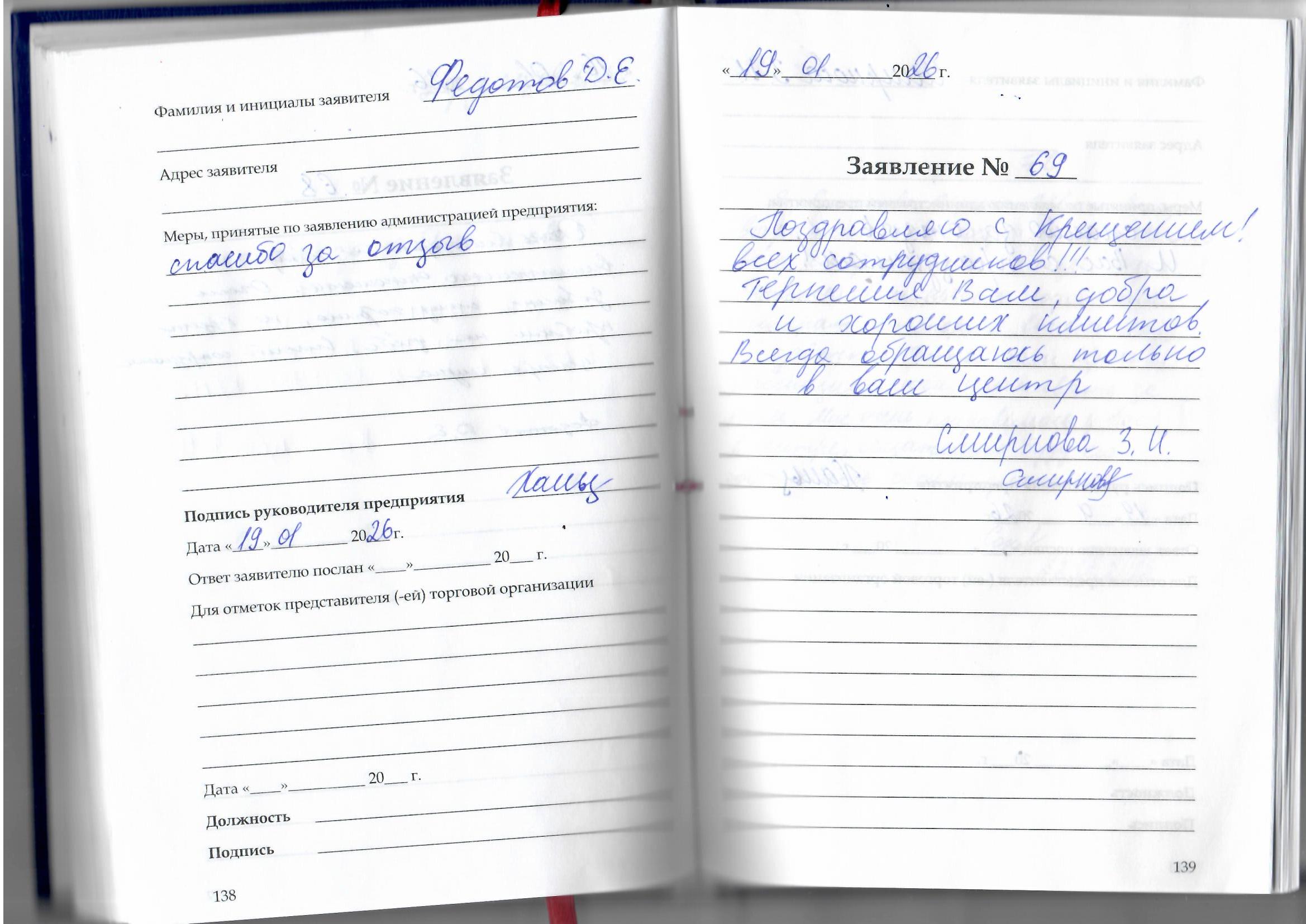 Поздравляю с Крещением! всех сотрудников !!! Терпения Вам, добра и хороших клиентов. Всегда обращаюсь только в ваш центр. Смирнова З.И.