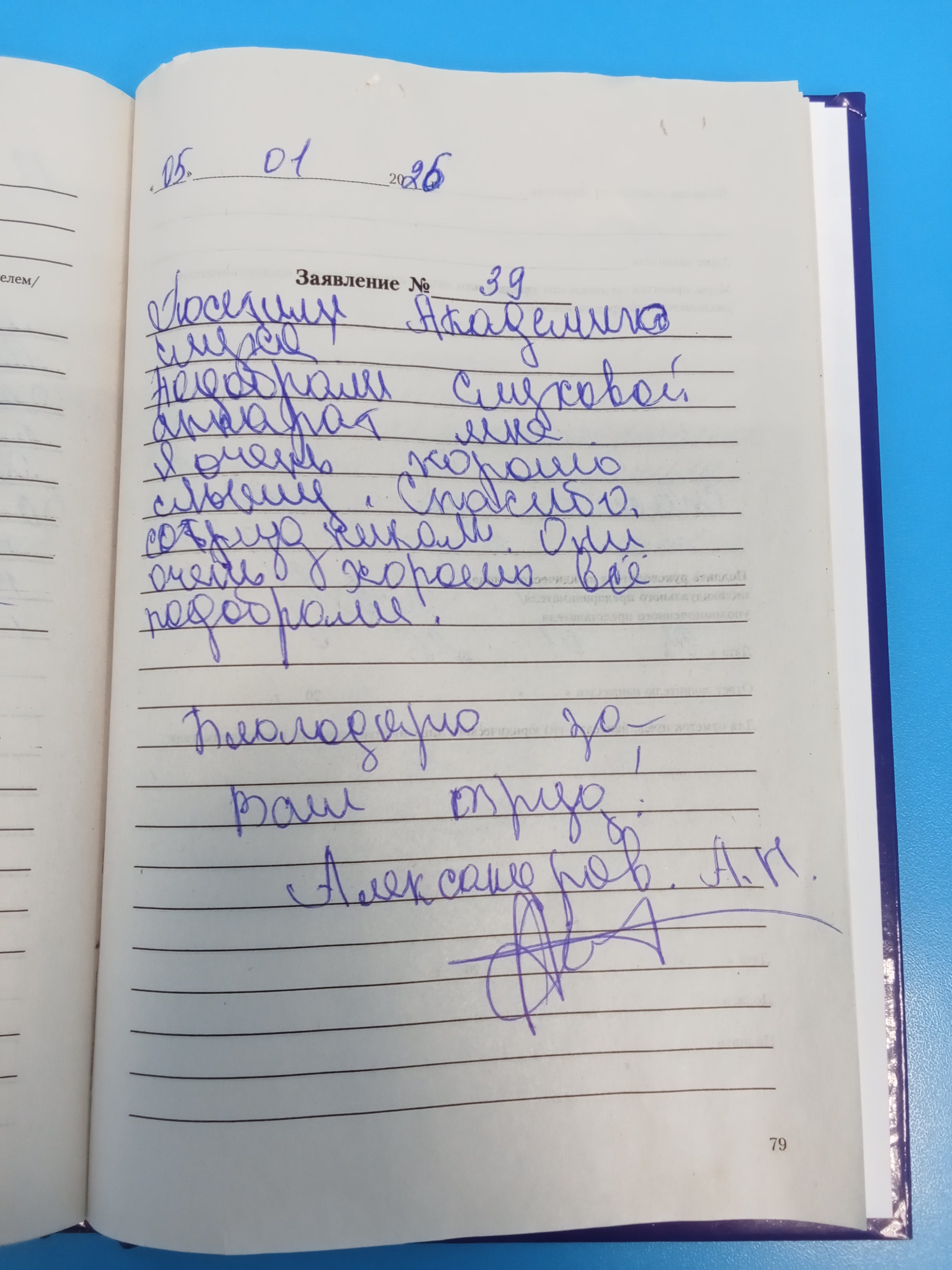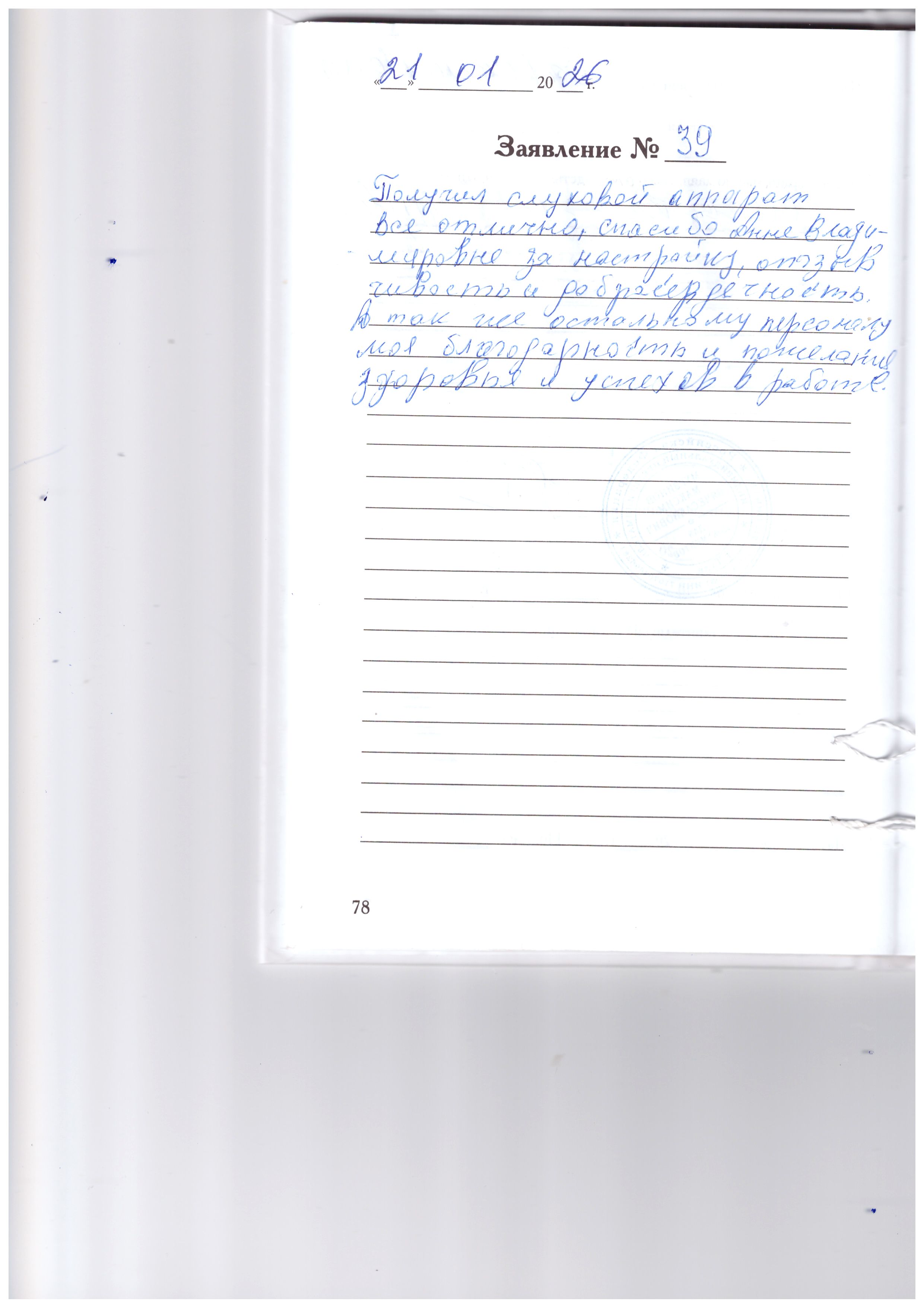 Я, Соколова Ирина Ивановна, выражаю огромную благодарность всем сотрудникам Центра слуха. Татьяна Валерьевна подобрала аппарат и теперь я все слышу, а девочки Татьяна и Ирина рассказали, как ухаживать за ним. Мне очень понравилось у вас в центре, обязательно буду его советовать своим знакомым 22.01.2026