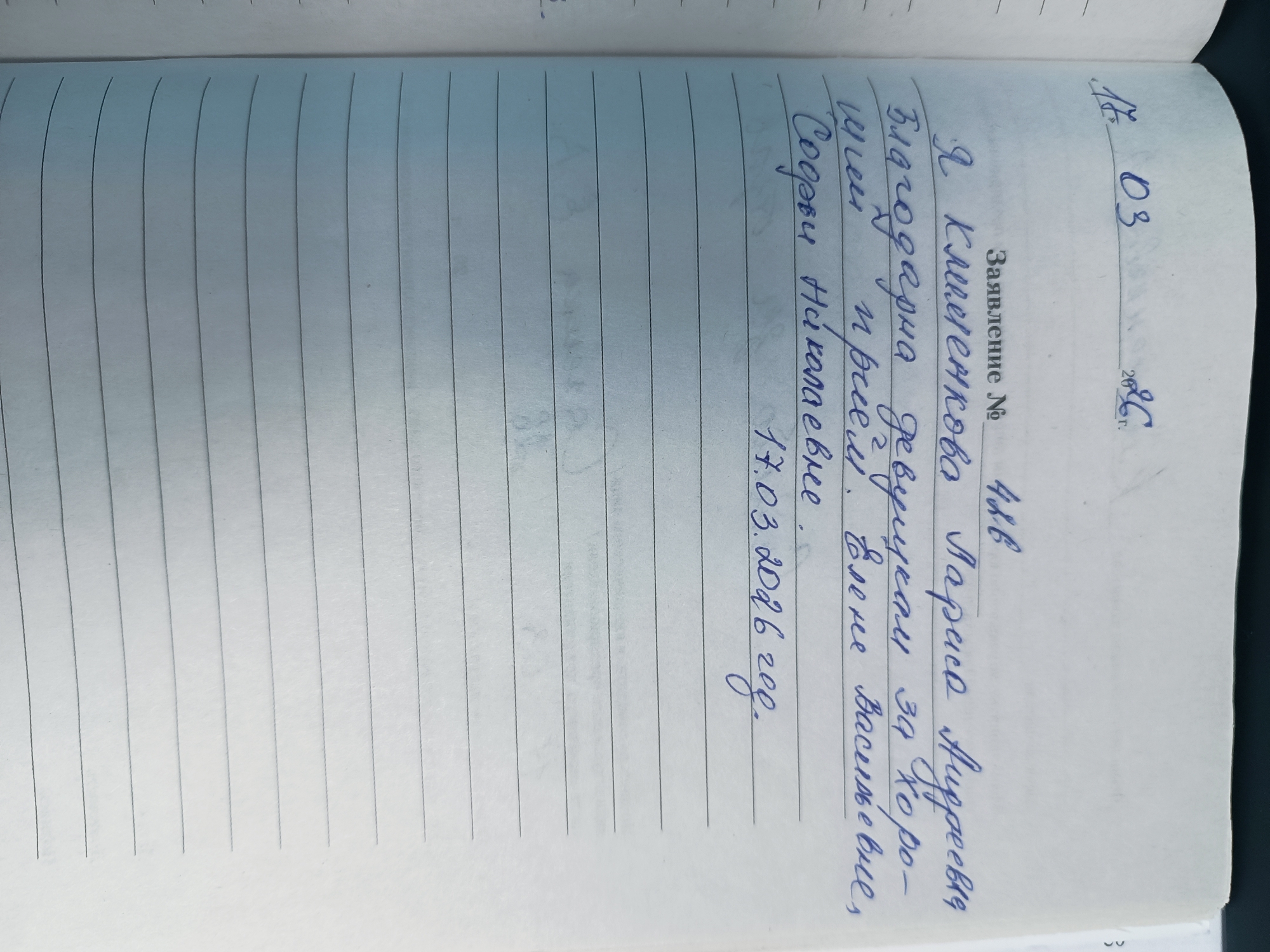 Я, Клименкова Лариса Андреевна, благодарна девушкам за хороший приём. Елене Васильевне и Софье Николаевне. 17.03.2026 год