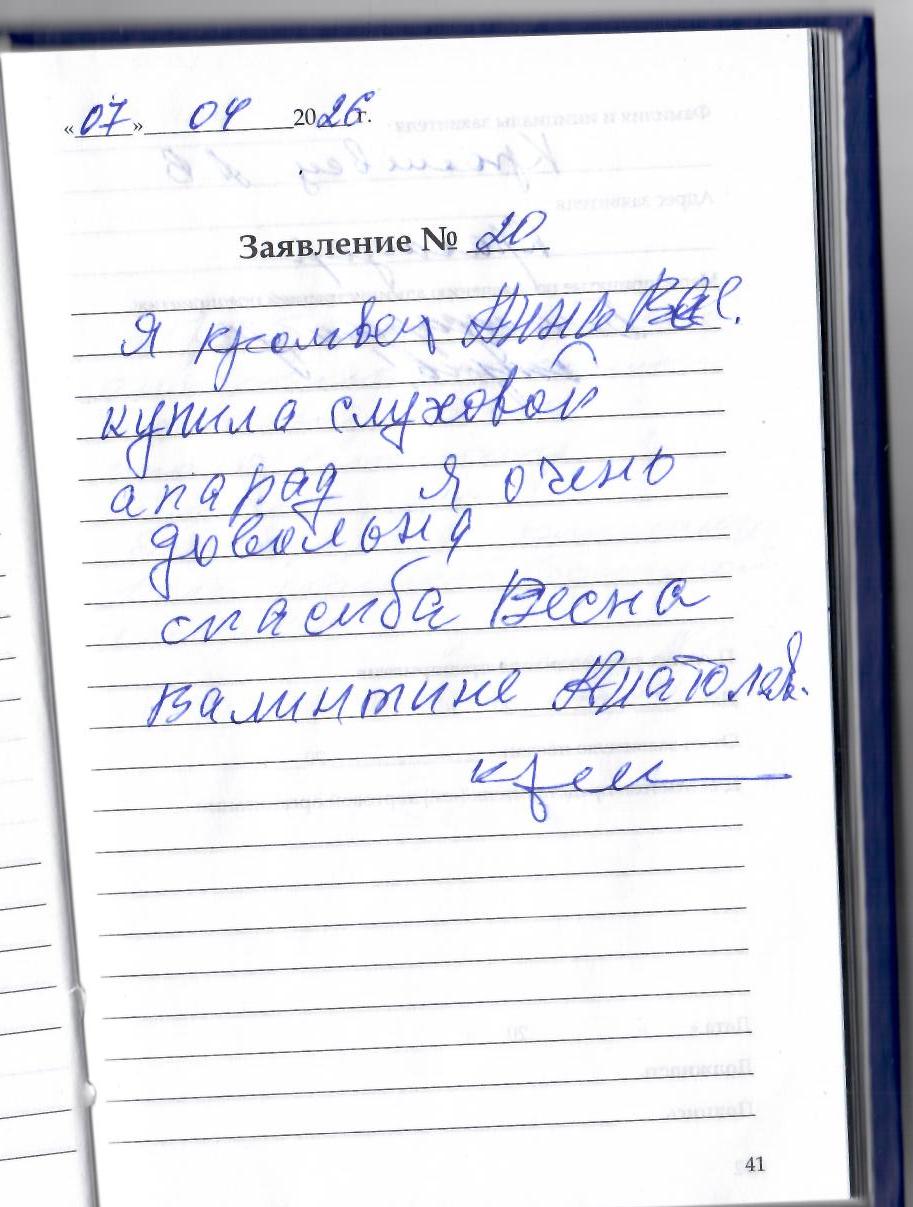 Я Кроливец А.В. купила слуховой аппарат. Я очень довольна. Спасибо Весна Валентине Анатольевне.
