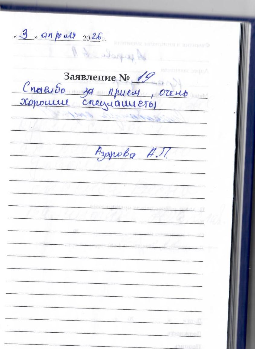 Спасибо за прием, очень хорошие специалисты.
