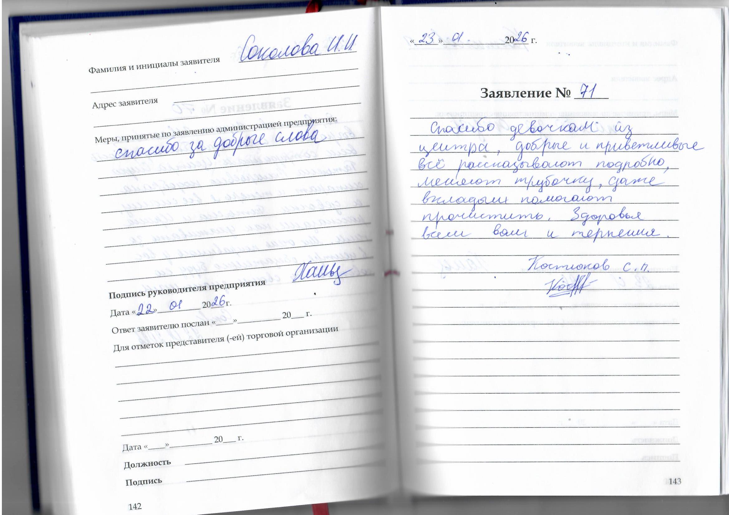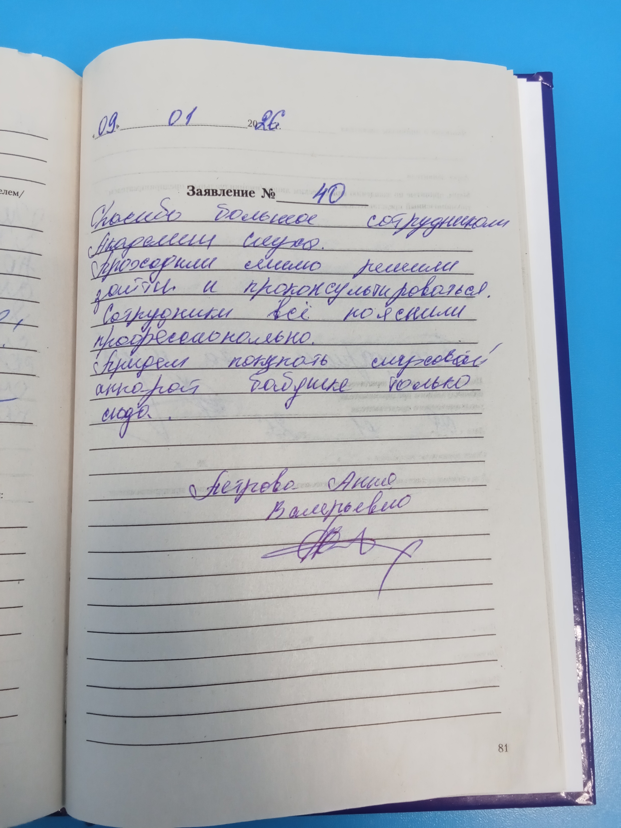 Я, Соколова Ирина Ивановна, выражаю огромную благодарность всем сотрудникам Центра слуха. Татьяна Валерьевна подобрала аппарат и теперь я все слышу, а девочки Татьяна и Ирина рассказали, как ухаживать за ним. Мне очень понравилось у вас в центре, обязательно буду его советовать своим знакомым 22.01.2026