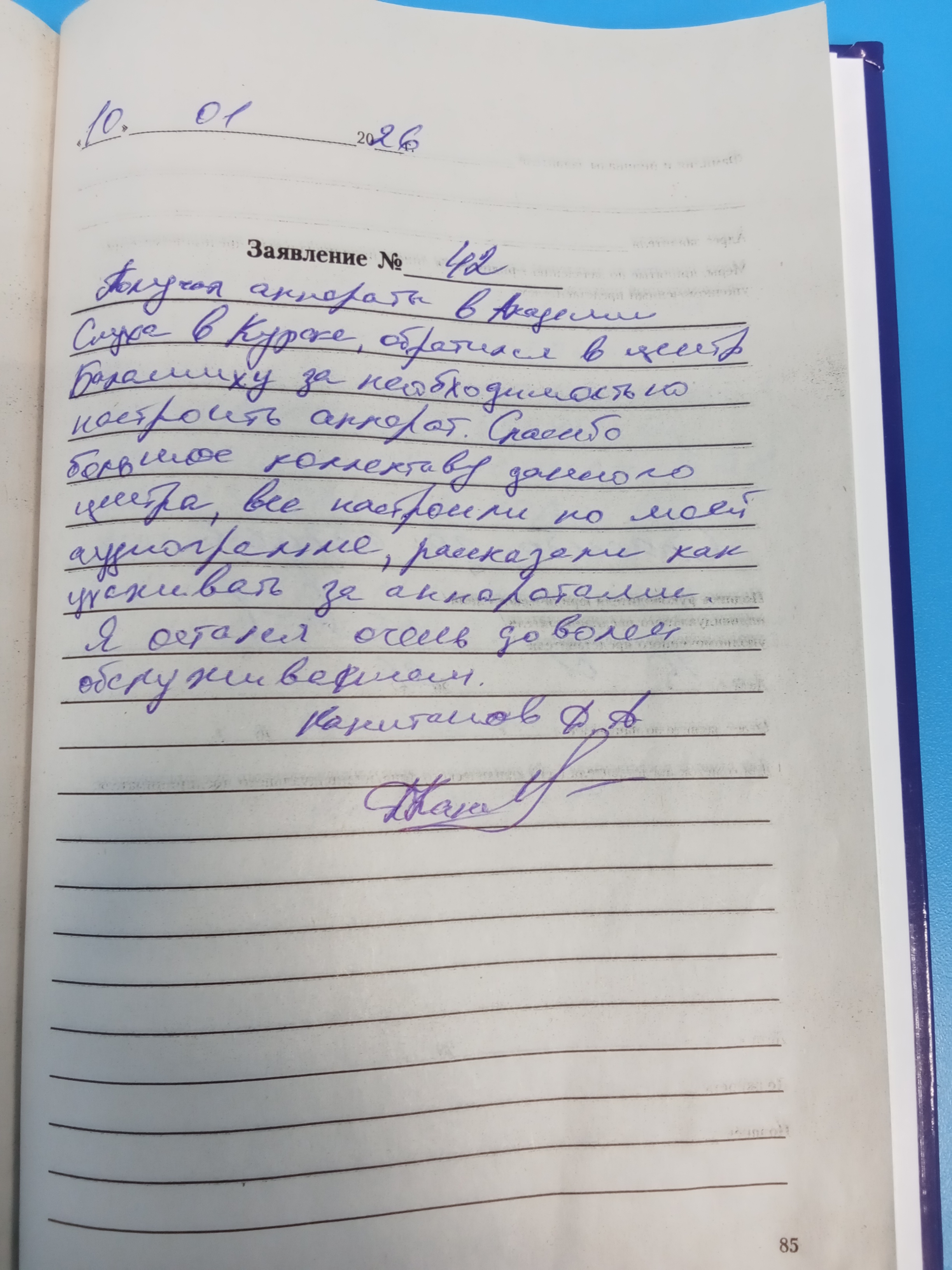 Спасибо девочкам из центра, добрый и приветливые все рассказывают подробно, меняют трубочку, даже вкладыш помогают прочистить. Здоровья всем вам и терпения. Костюков С.П.