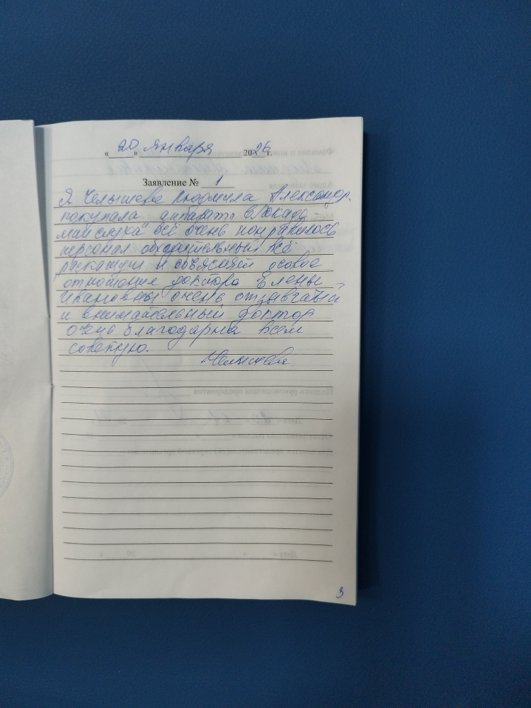 Благодарим Вас проделанную работу.Нам все очень понравилось.Прием прошел хорошо.Специалисты очень грамотны и квалифицированы. Индивидуальный подход к каждому клиенту.