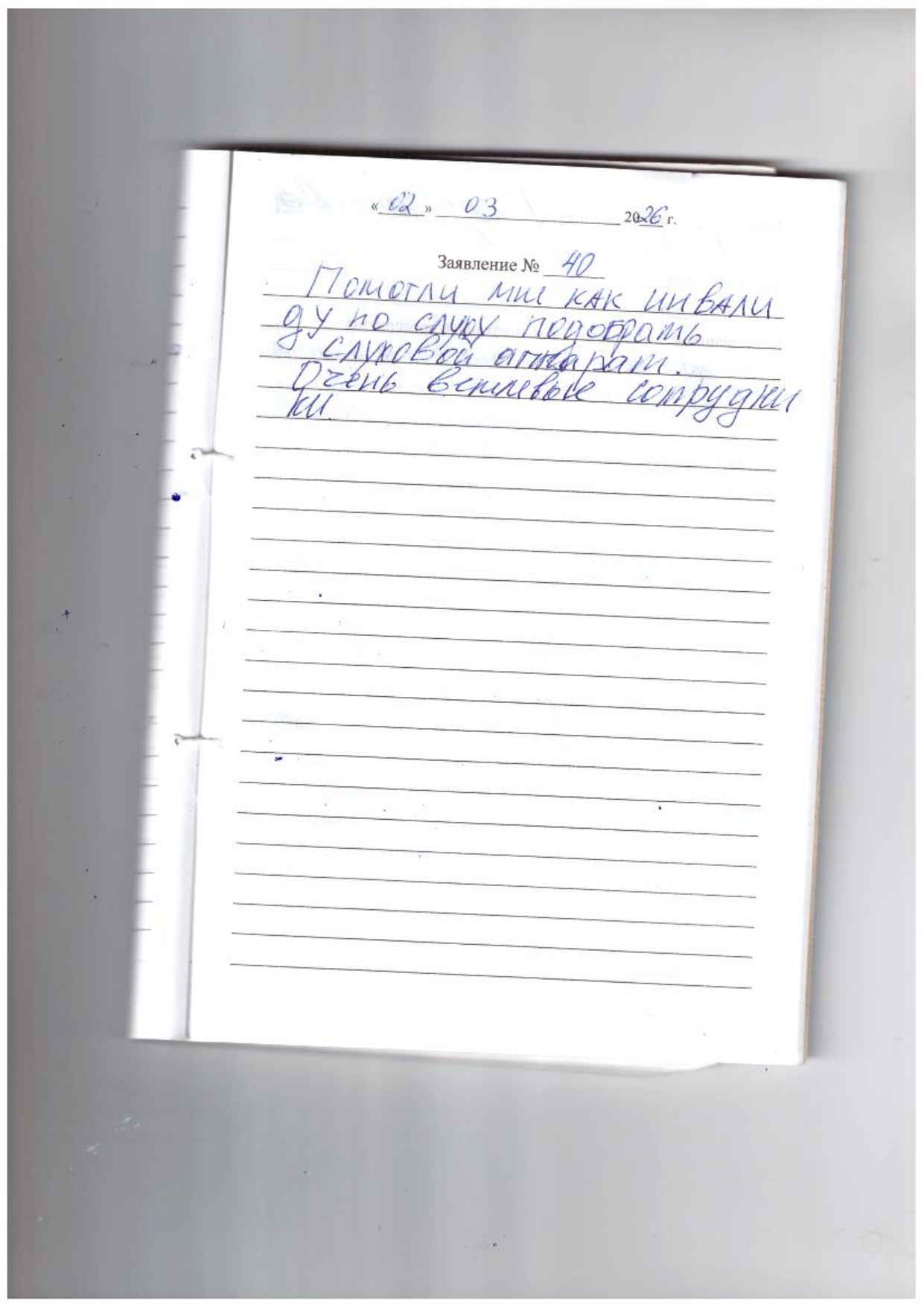 Выражаю благодарность сотрудникам в помощи подбора слухового аппарата для моего сына.