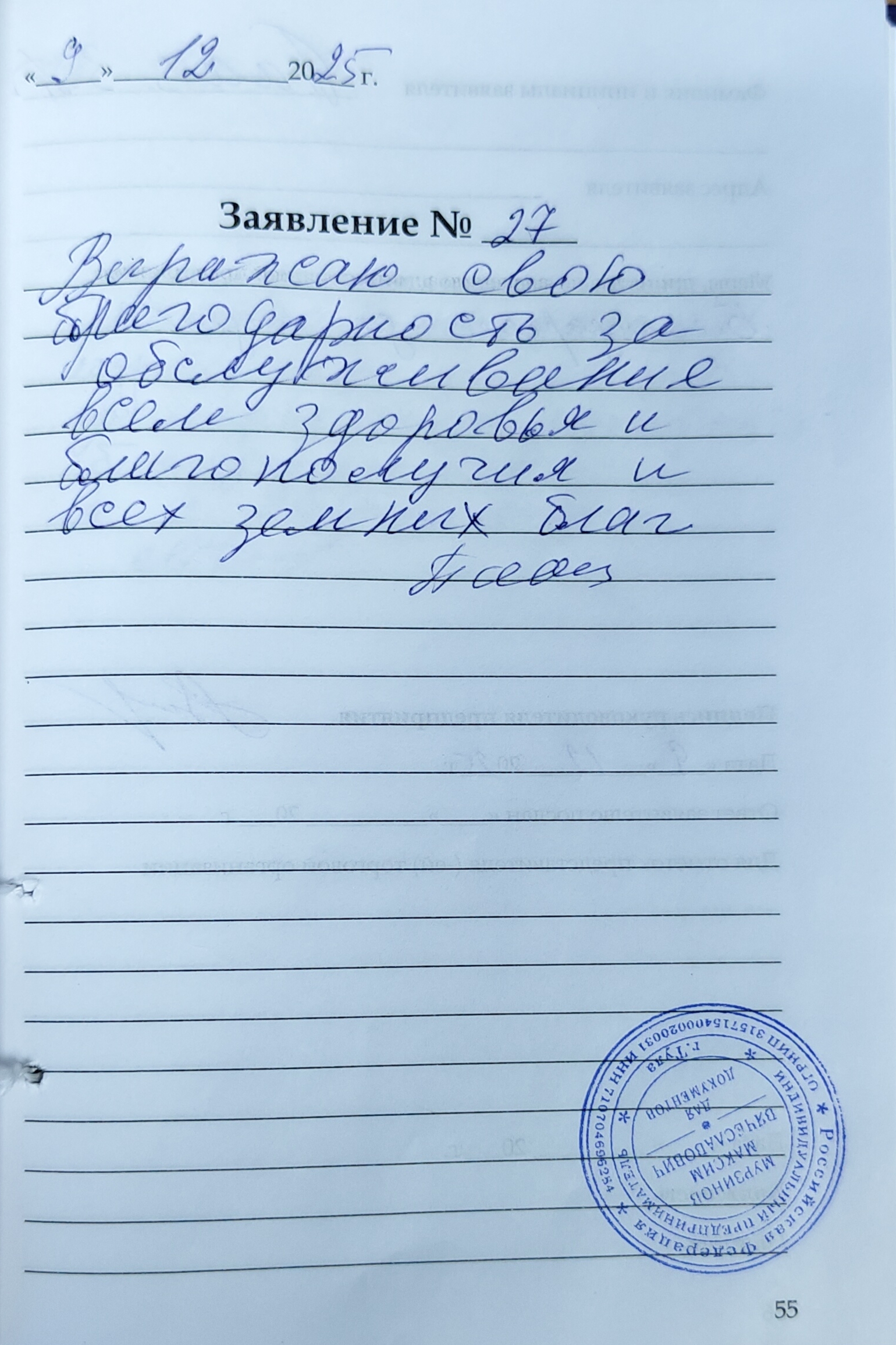 Выражаю свою благодарность за обслуживание. Всем здоровья и благополучия и всех земных благ.
