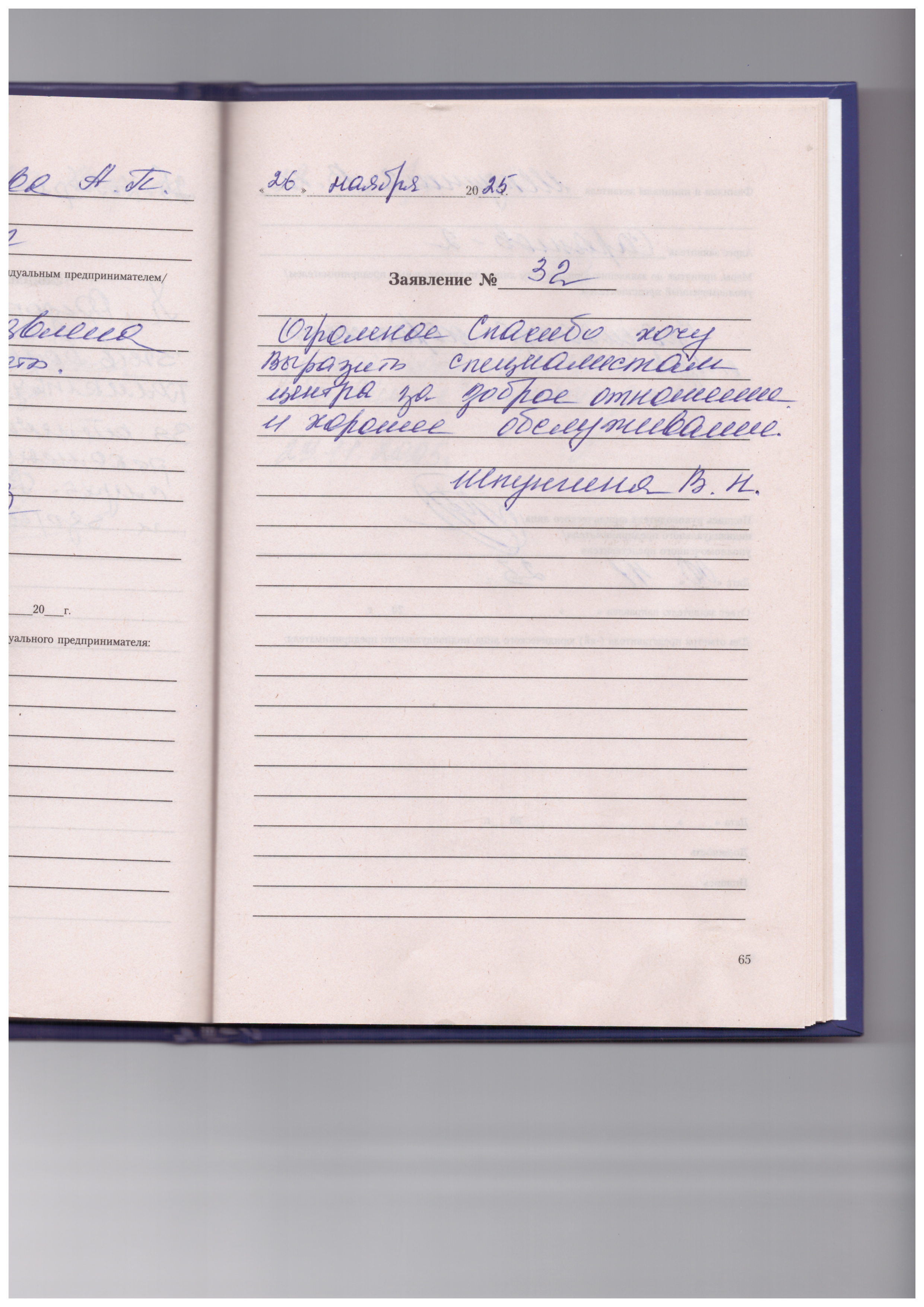 Огромное спасибо хочу выразить специалистам центра за доброе отношение и хорошее обслуживание.