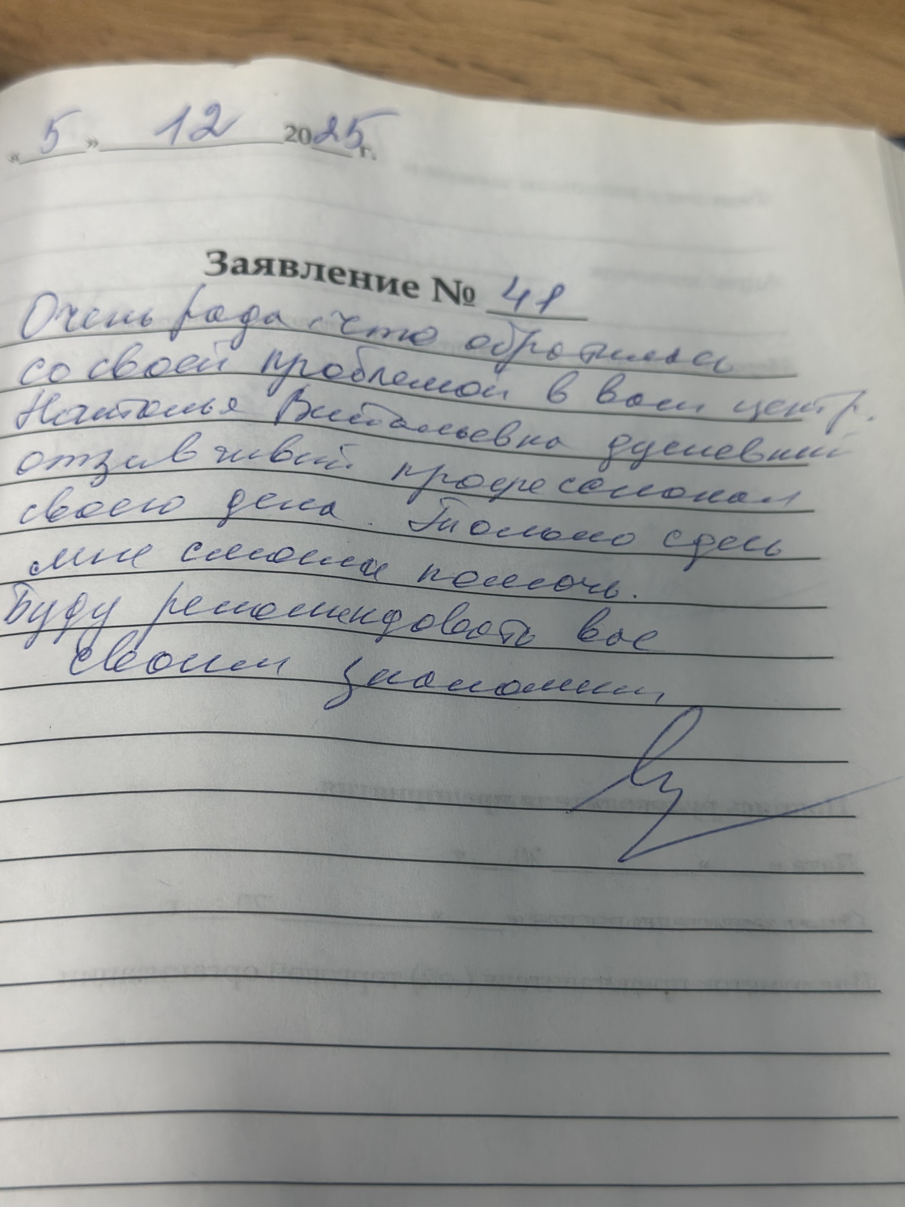 Очень рада, что обратилась со своей проблемой в ваш центр. Наталья Витальевна душевный отзывчивый профессионал своего дела. Только сдесь мне смогли помочь. Буду рекомендовать всем своим знакомым.