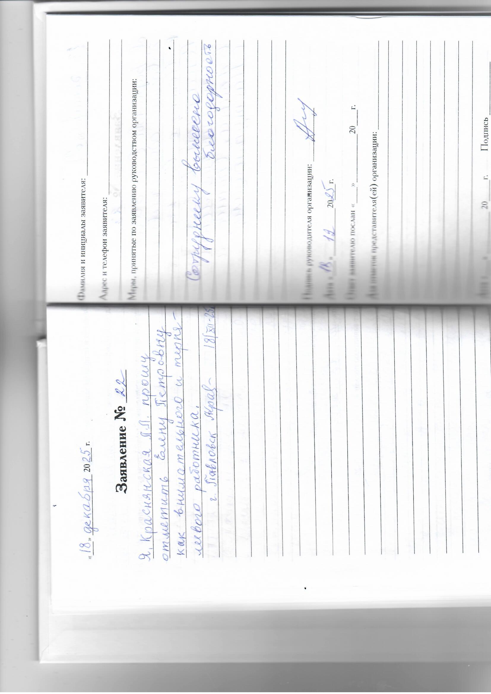 Я. Краснянская Л.Л. прошу отметить Елену Петровну как внимательного и терпеливого работника.