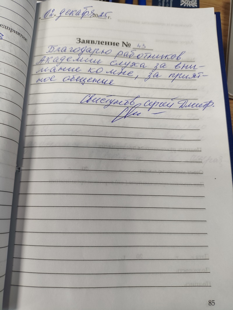Благодарю работников Академии слуха за внимание ко мне, за приятное общение