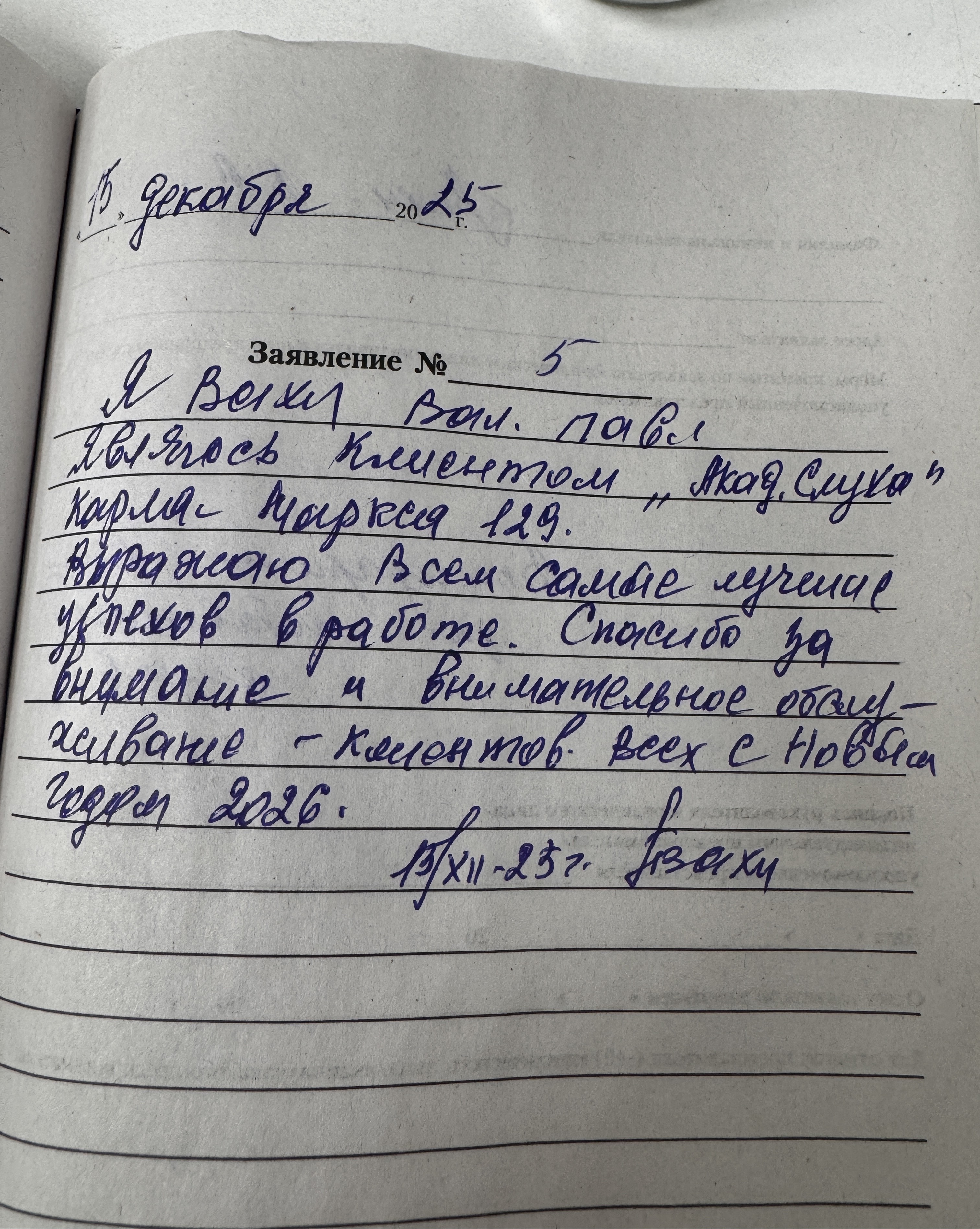 Я Вахи Вал. Павл. Являюсь клиентом "Акад. Слуха". Карла Маркса 129. Выражаю всем самые лучшие успехов в работе. Спасибо за внимание и внимательное обслуживание- клиентов. Всех с Новым годом 2026.