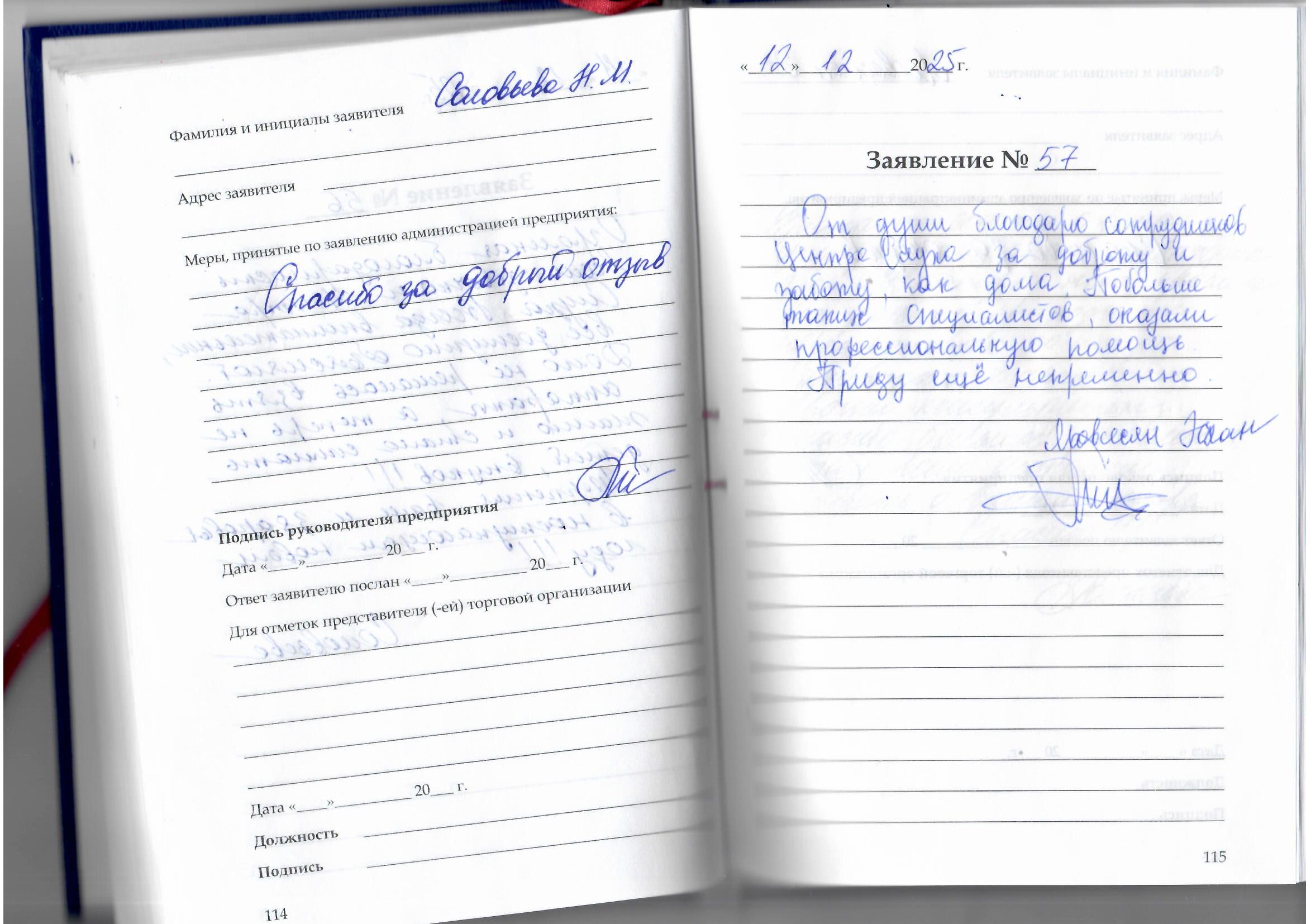 Очень благодарны за внимательное и чуткое отношение. Профессиональный подход к клиентам. Просим объявить благодарность сотрудникам центра. Удачи и благополучия в наступающем году. С уважение Ваш клиент Шейкина Л.В