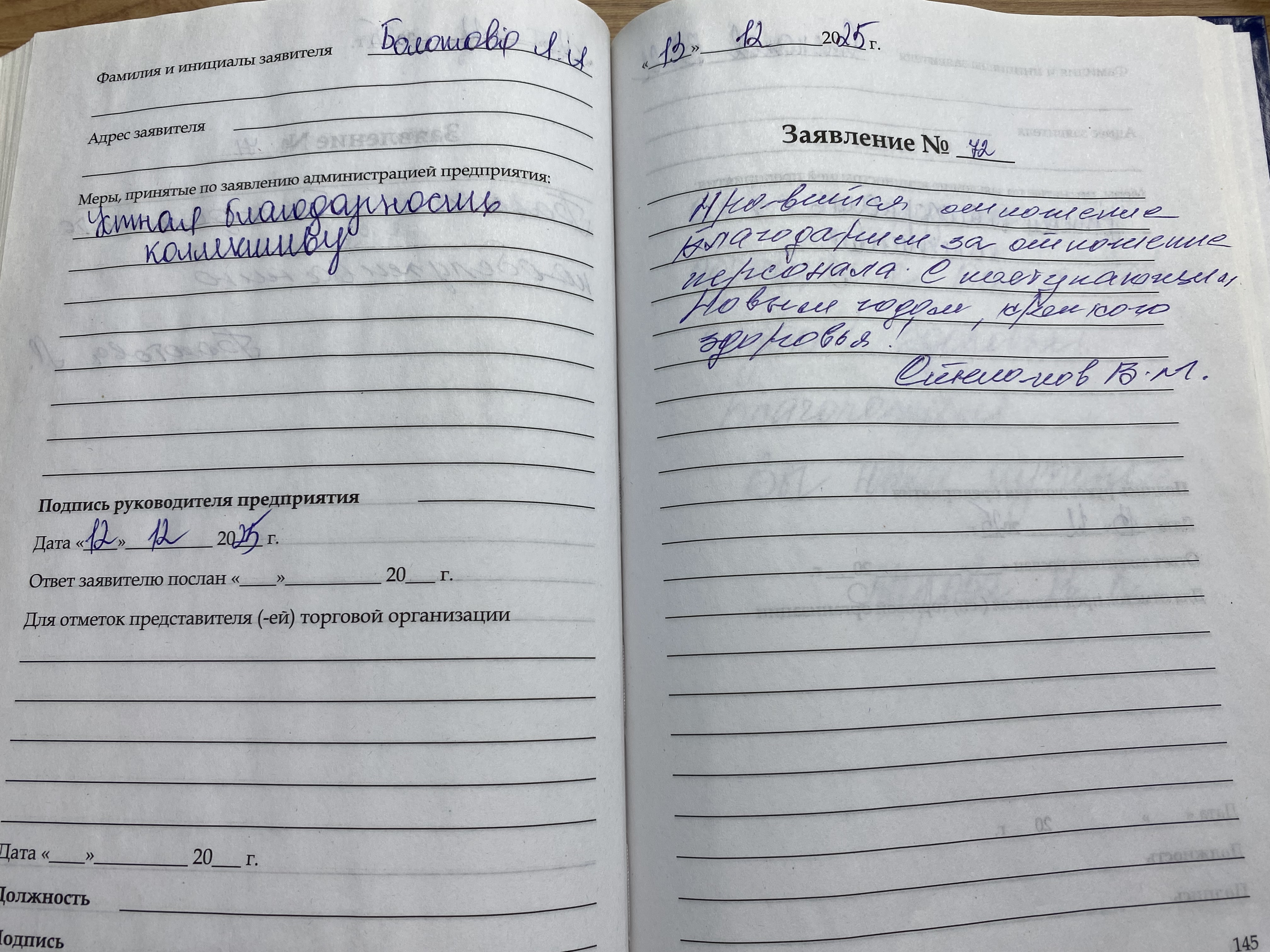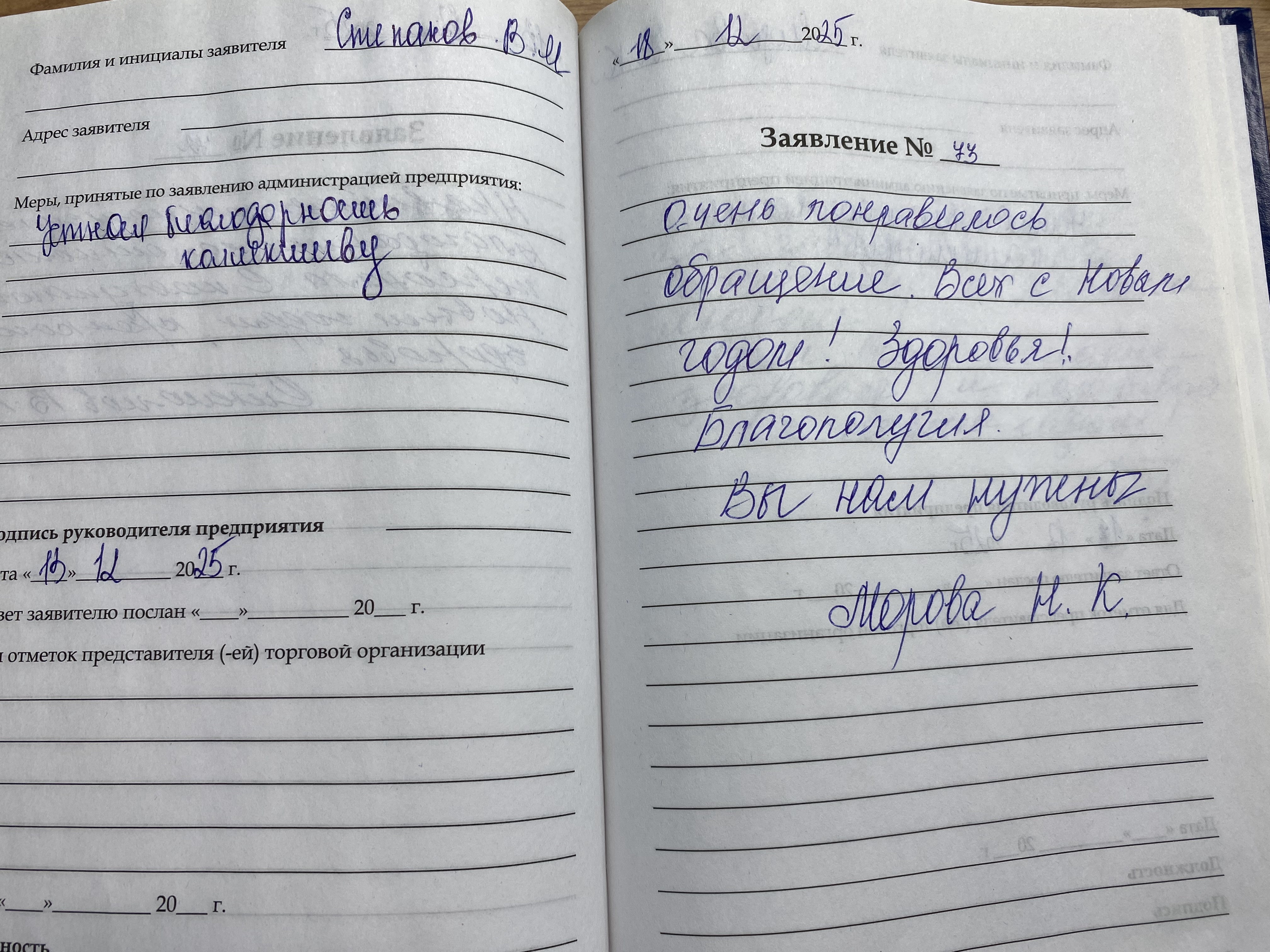 Нравится отношение. Благодарим за отношение персонала. С наступающим Новым Годом, крепкого здоровья.