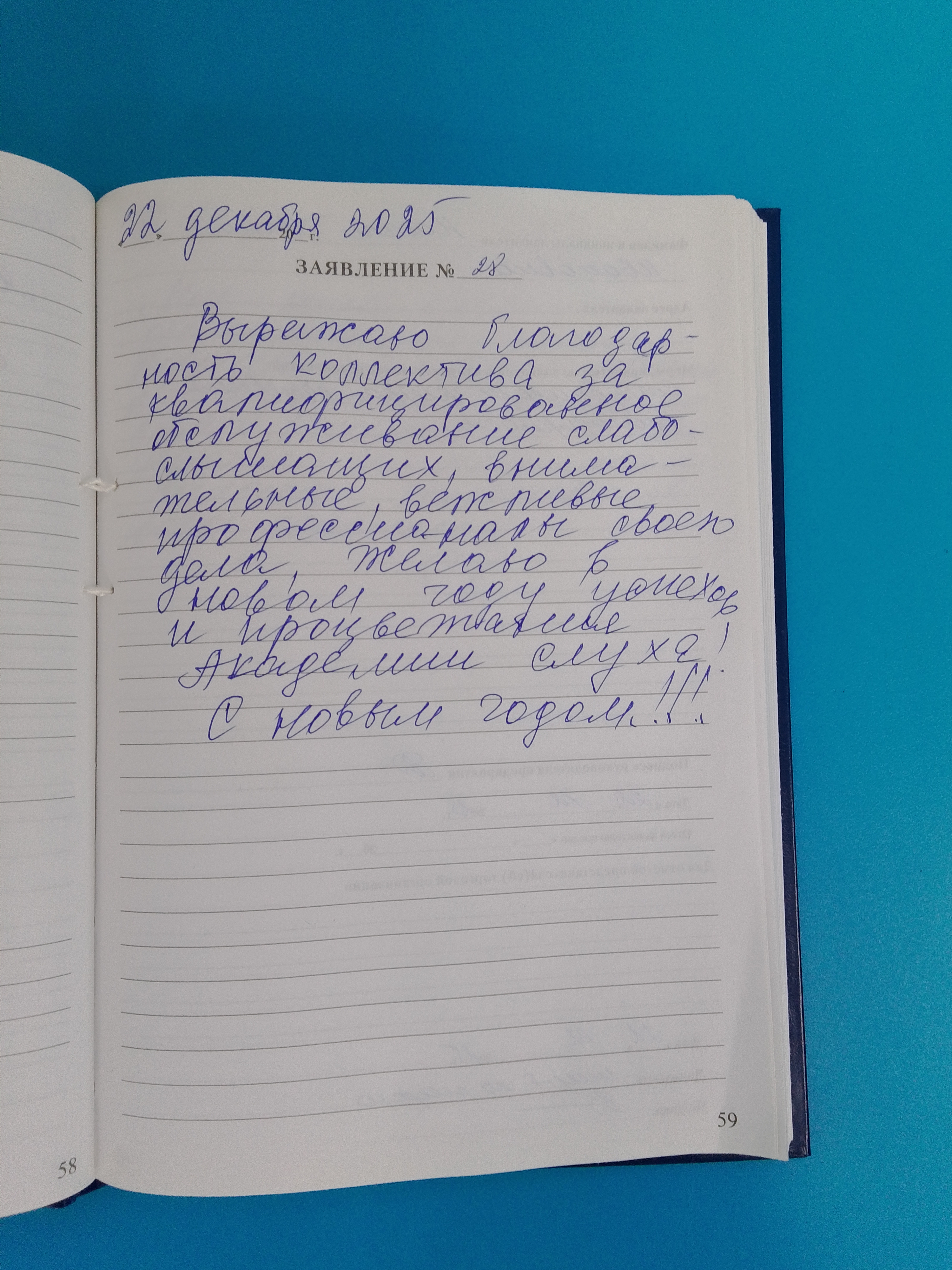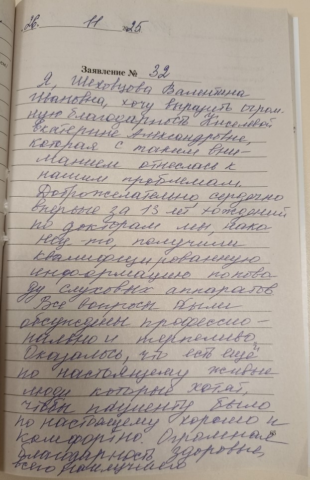 Выражаю благодарность коллективу за квалифицированное обслуживание слабослышащих, внимательные, вежливые профессионалы своего дела. Желаю в Новом году успехов и процветания Академии слуха!