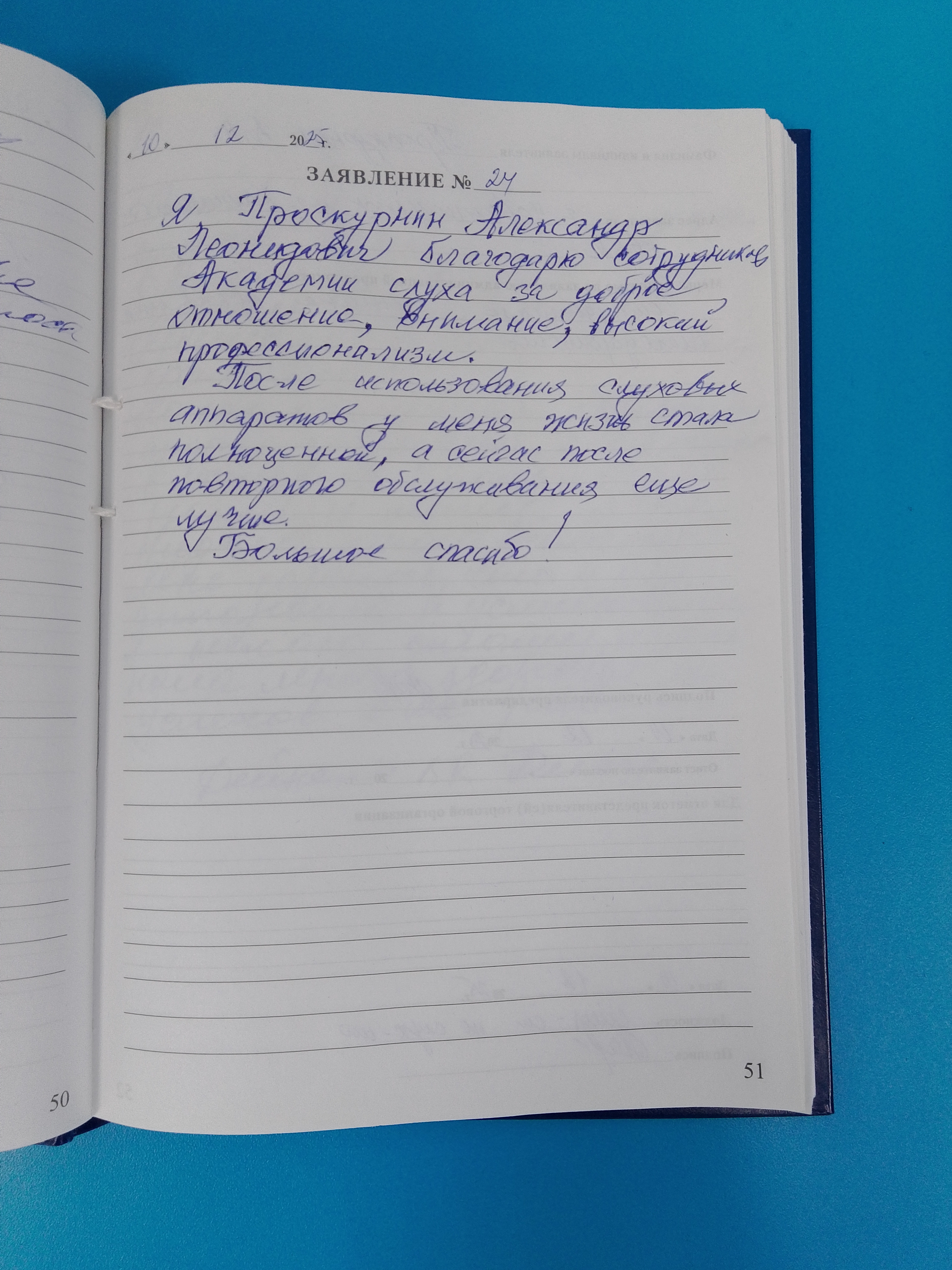 Я, Проскурнин Александр Леонидович благодарю сотрудников Академии слуха за доброе отношение, внимание, высокий профессионализм.
