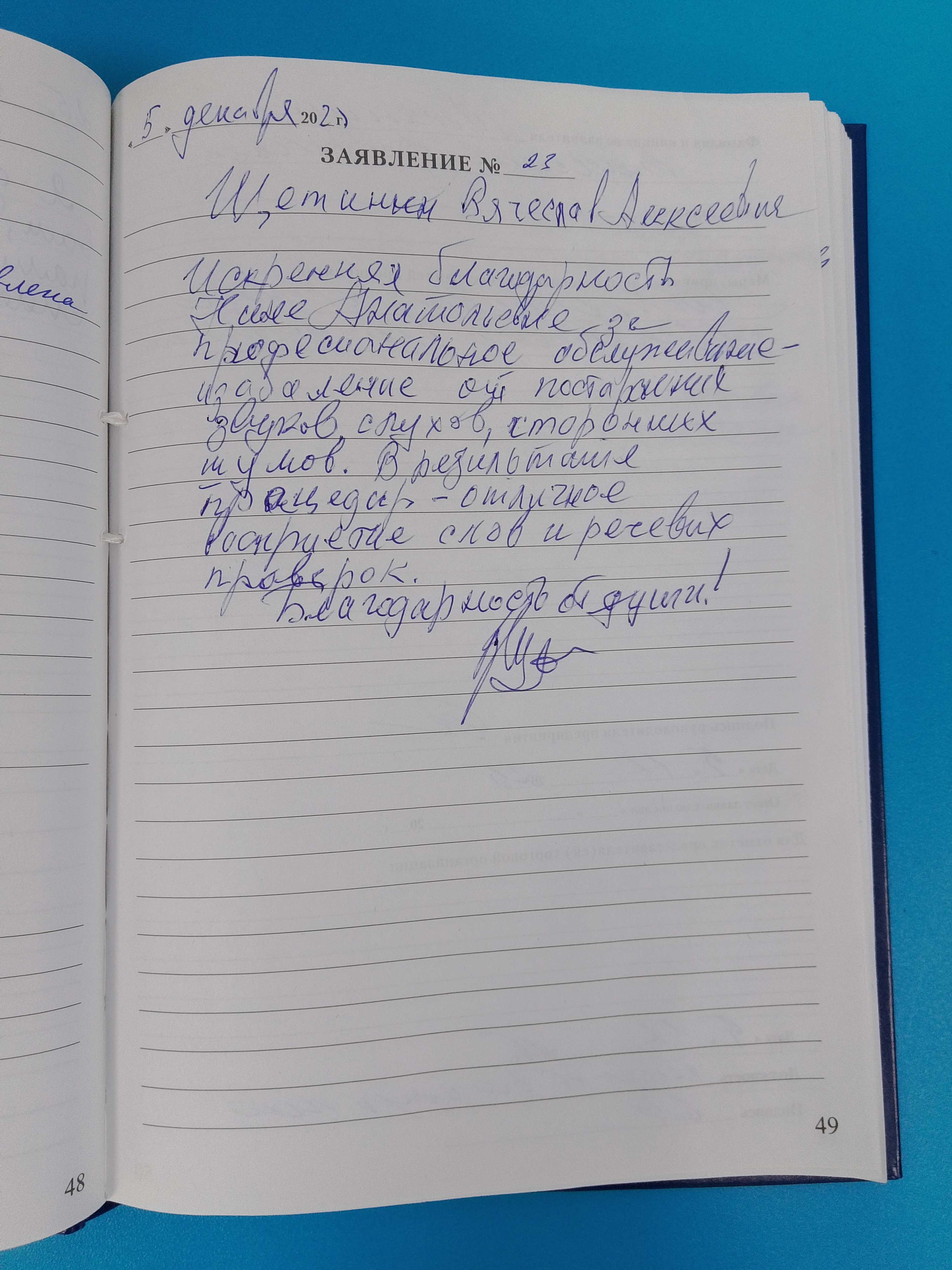 Благодарность от души!