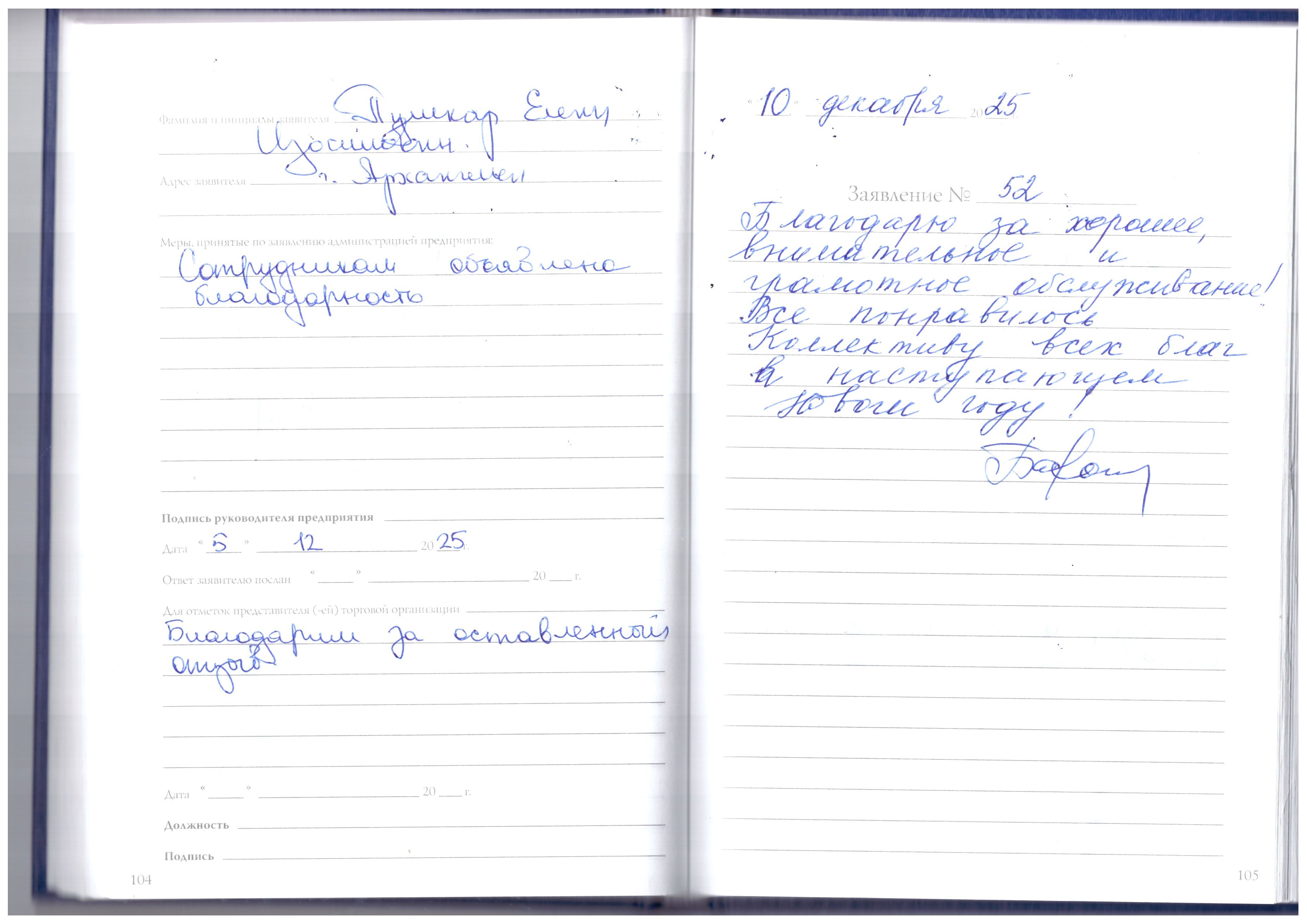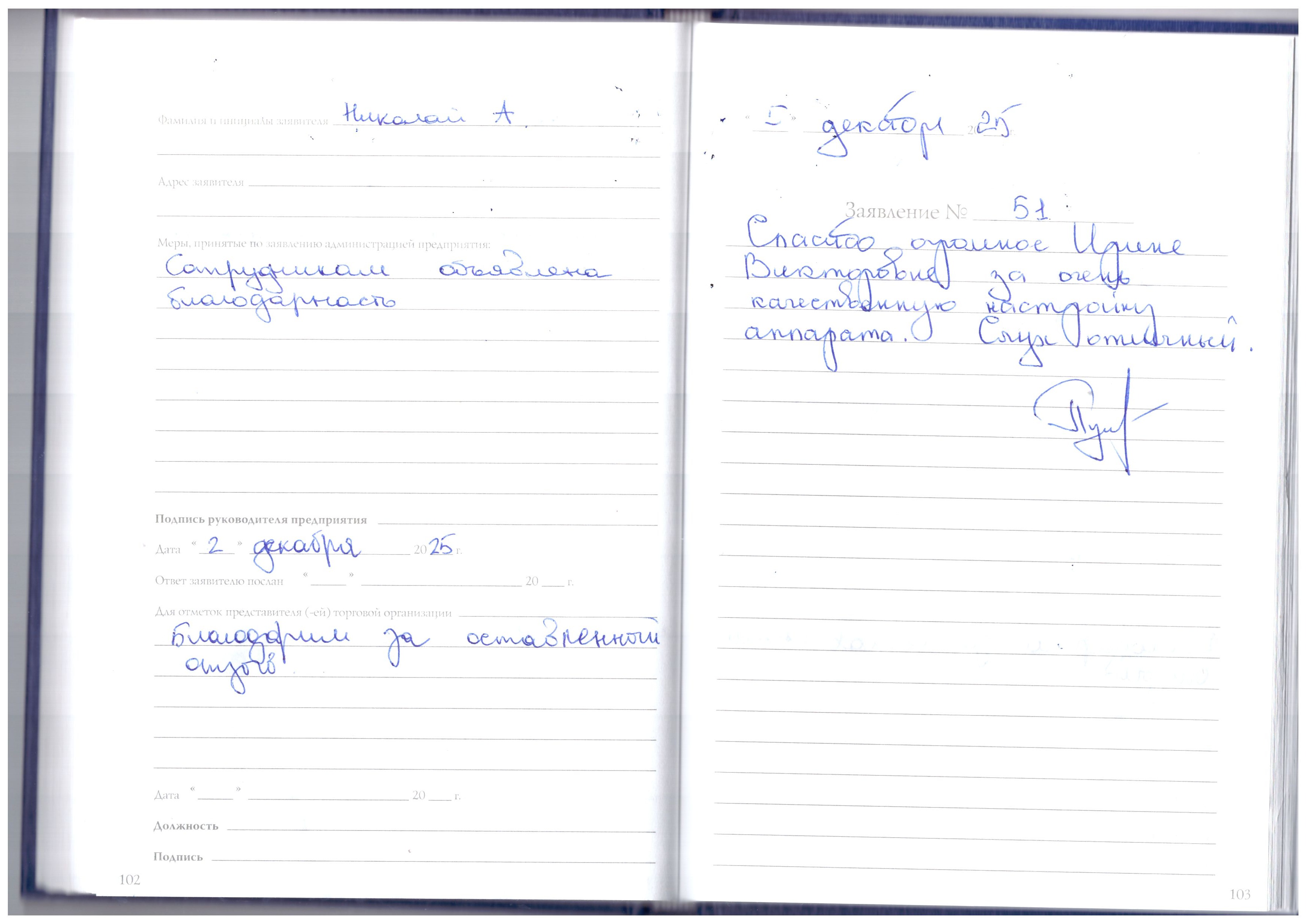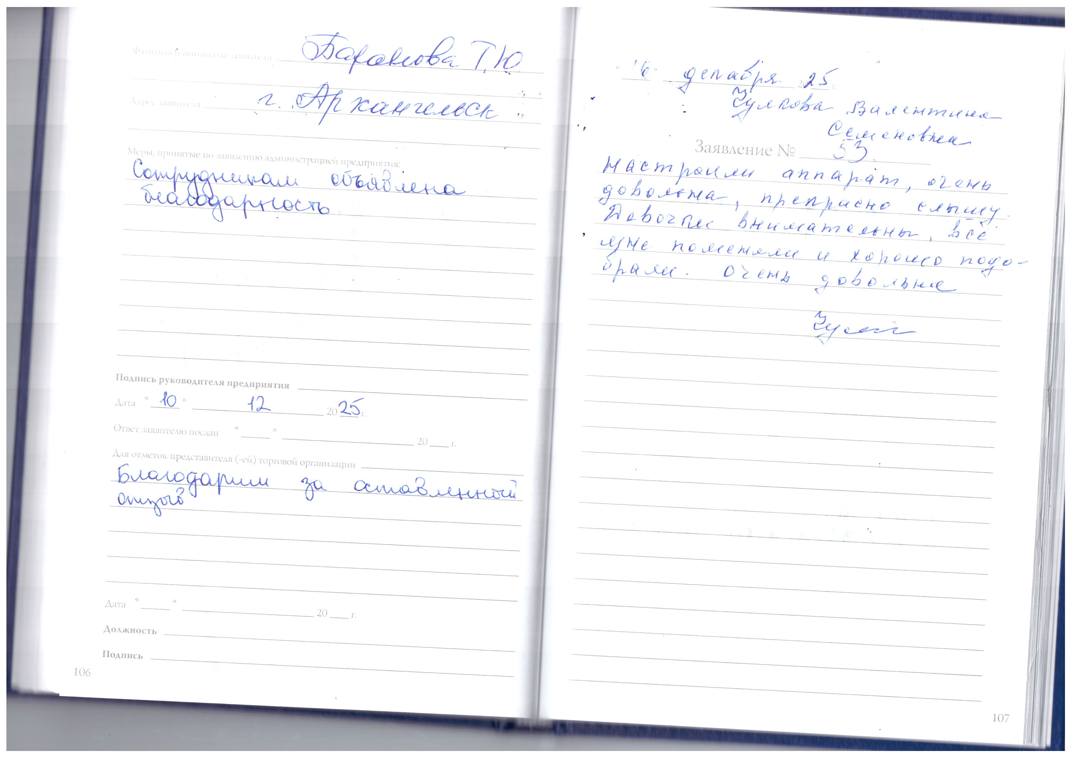 Благодарю, за хорошее, внимательное и грамотное обслуживание! Все понравилось. Коллективу всех благ в наступающем новом году!