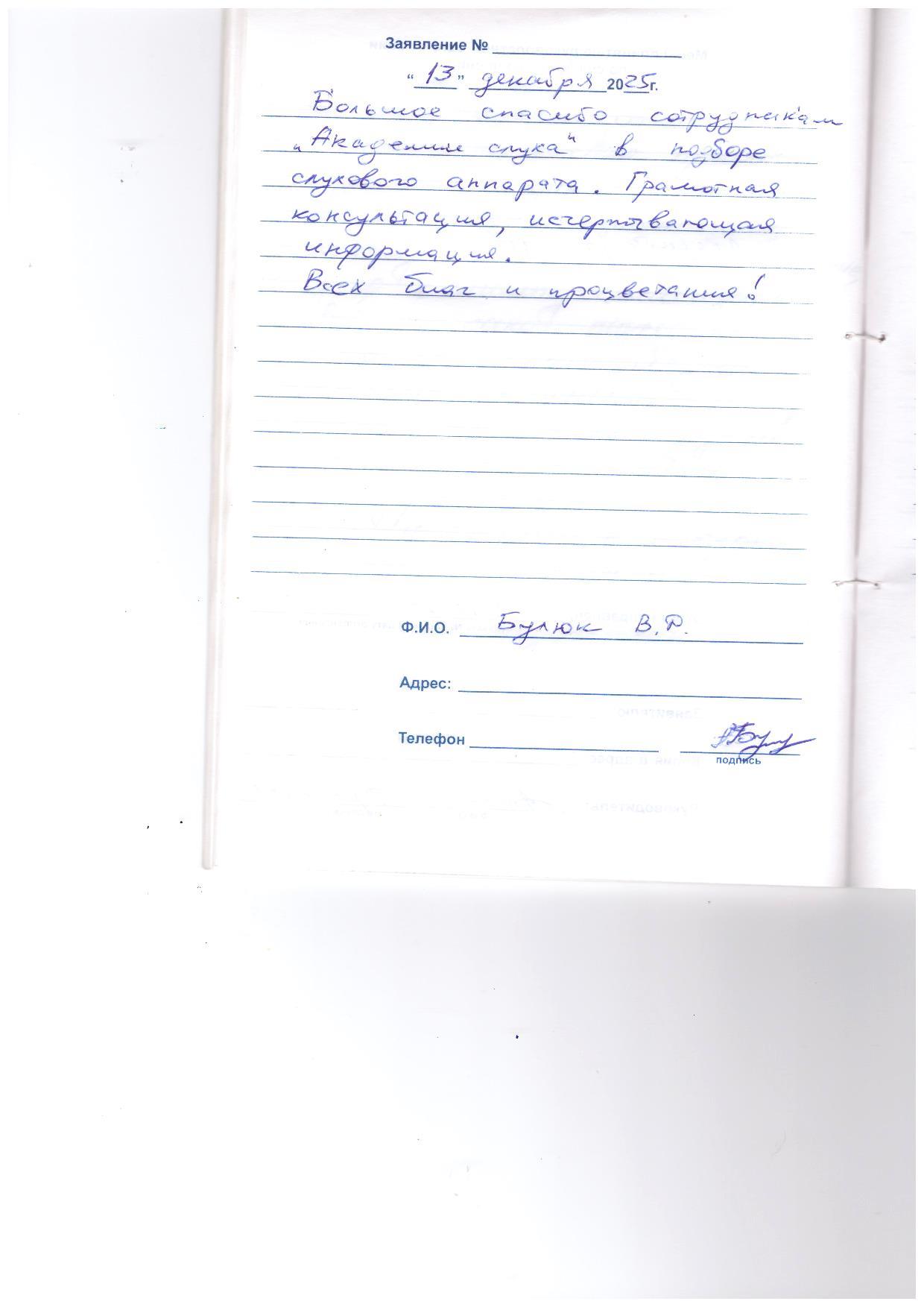 Премного благодарен сотрудникам "Академии Слуха". Знаю о Вас давно, получал бесплатно слуховые аппараты, но хотел другие и вот-приобрел.
