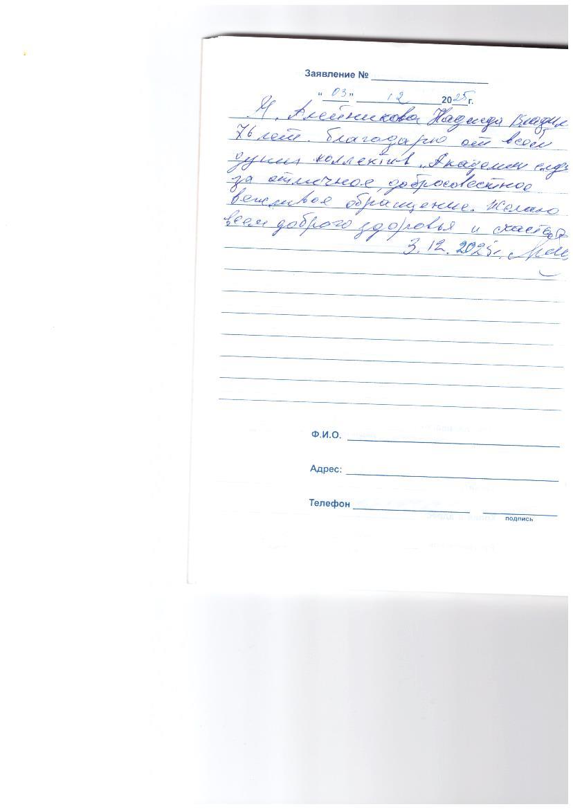 Я Алейникова Надежда Владимировна 76 лет. Благодарю от всей души коллектив « Академии слуха» за отличное, добросовестное вежливое общение. Желаю всем доброго здоровья и счастья.