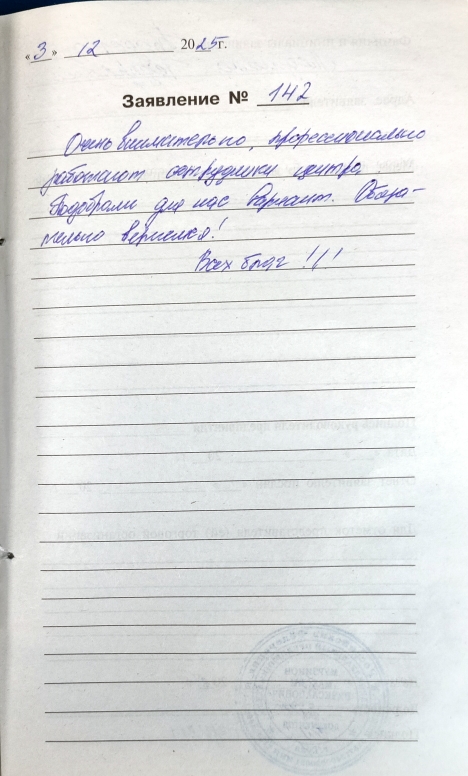 Очень внимательно, профессионально работают сотрудники центра. Подобрали для нас вариант. Обязательно вернемся! Всех благ!!!