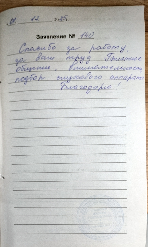 Приобрели мужу слуховой аппарат в центре Академия Слуха. Очень довольны. Муж носит слуховой аппарат постоянно, слышит в нем очень хорошо. Благодарю!