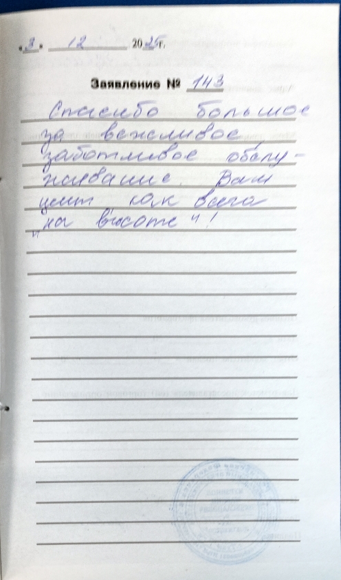 Спасибо большое за вежливое заботливое обслуживание. Вас ценят, как всегда на высоте!