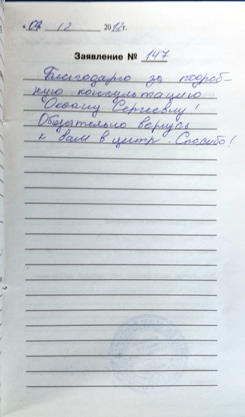 Благодарю за подробную консультацию Оксану Сергеевну! Обязательно вернусь к вам в центр. Спасибо!