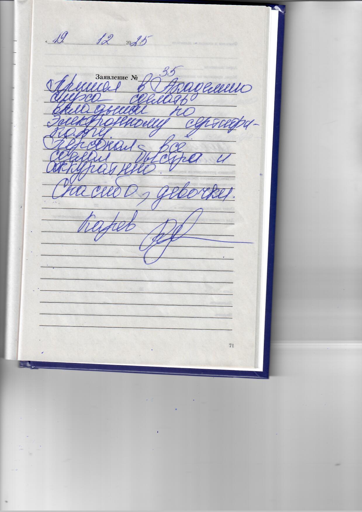 Я, Мешкова Александра Алексеевна, инвалид по слуху третьей группы, выношу благодарность Малышевой Светлане Александровне за ее квалифицированную помощь, чуткость в обращении с пациентами.