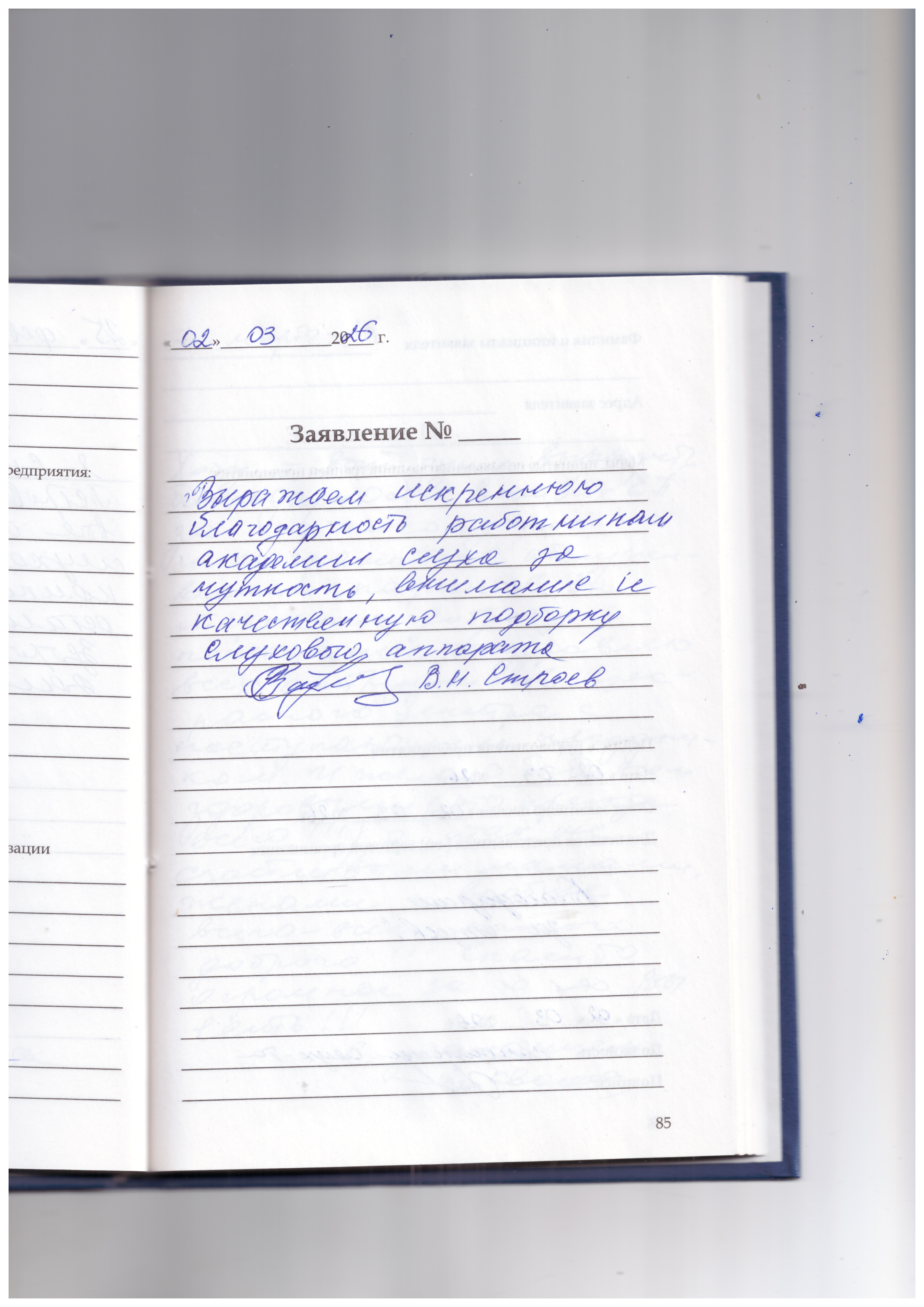 Я, Шапорев Александр Аверьянович получил слуховой аппарат, мне его настроили, всё нормально. Спасибо за всё.